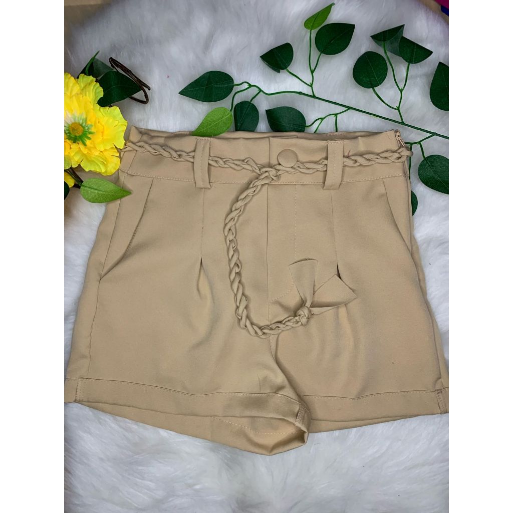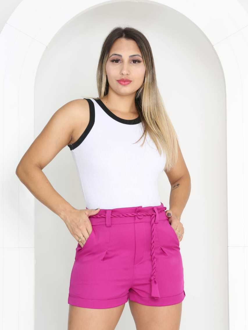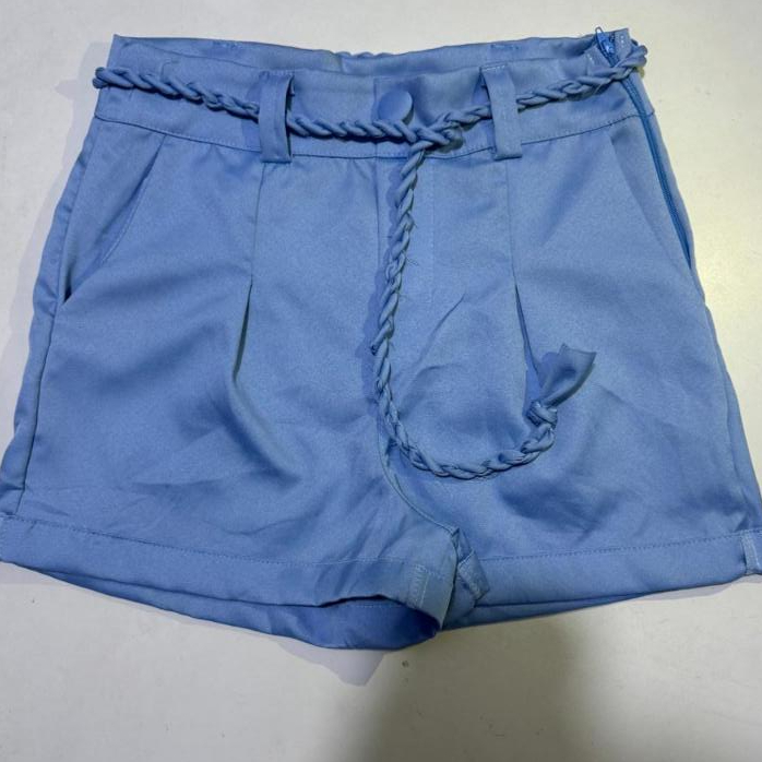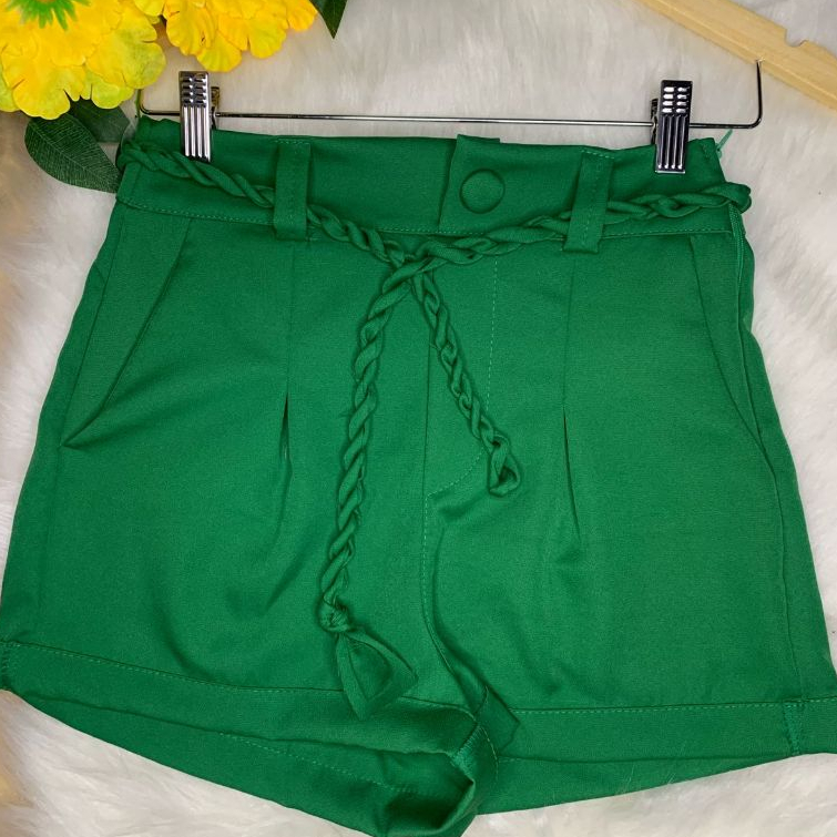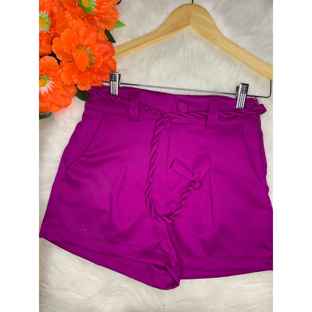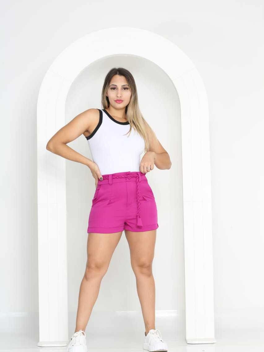 Short Femenino Cintura Alta tecido Alfaiateria com Cinto Cordão Moda Verão Cores Variados