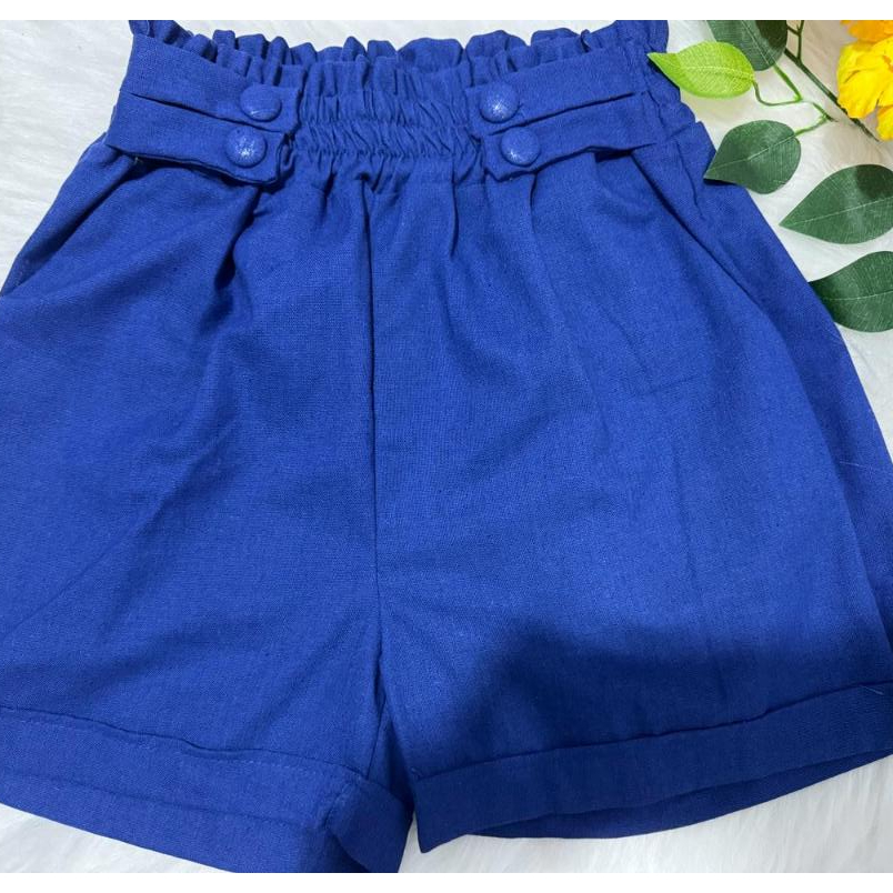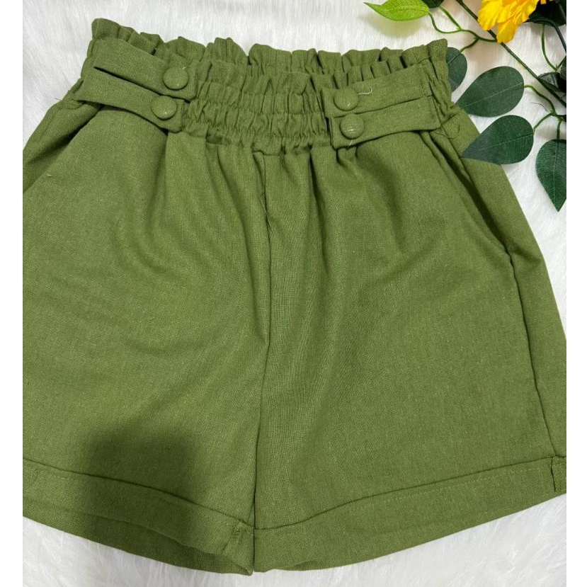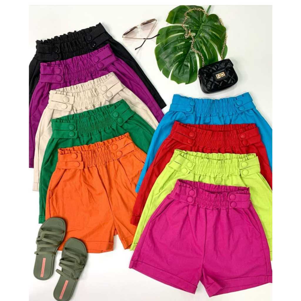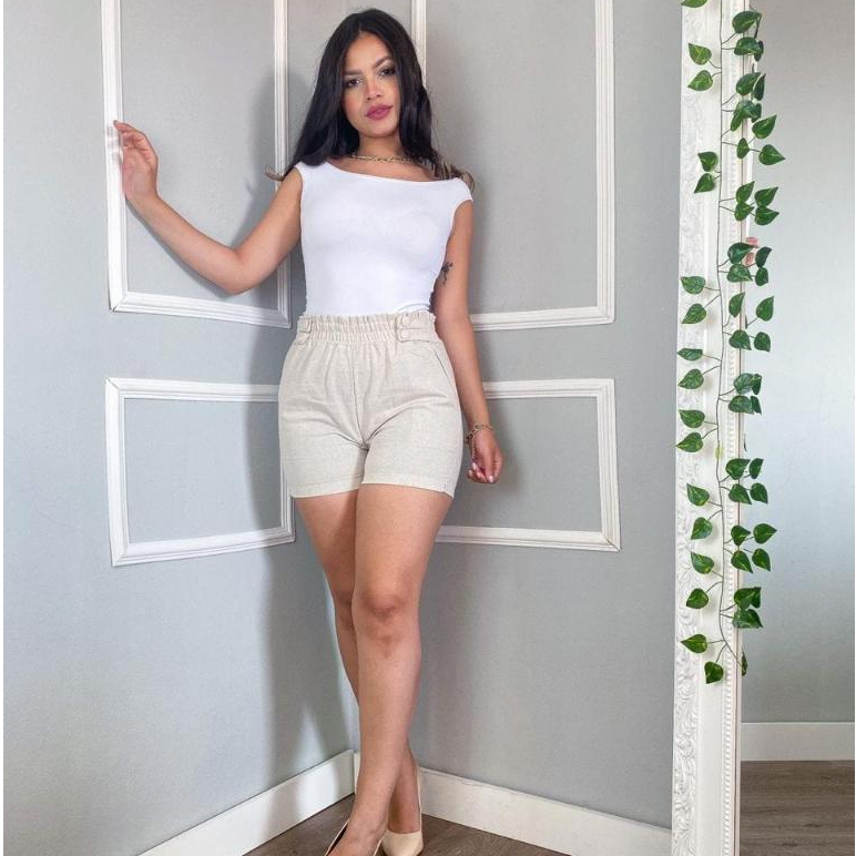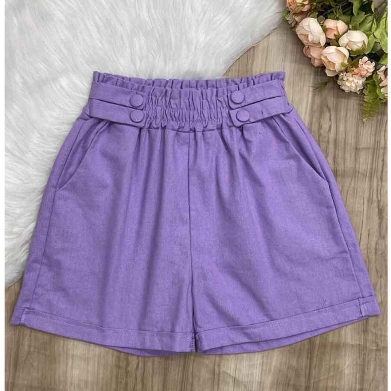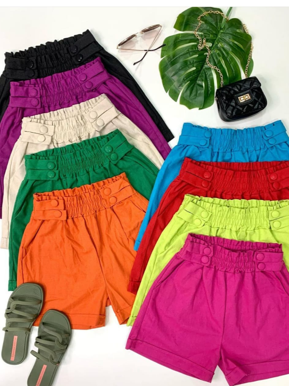 Short Feminino Linho Botões Forrados Elástico Com Bolso Tendencia 2026