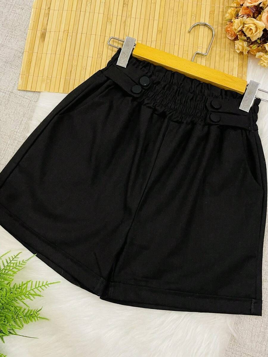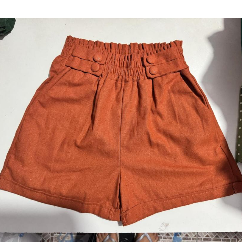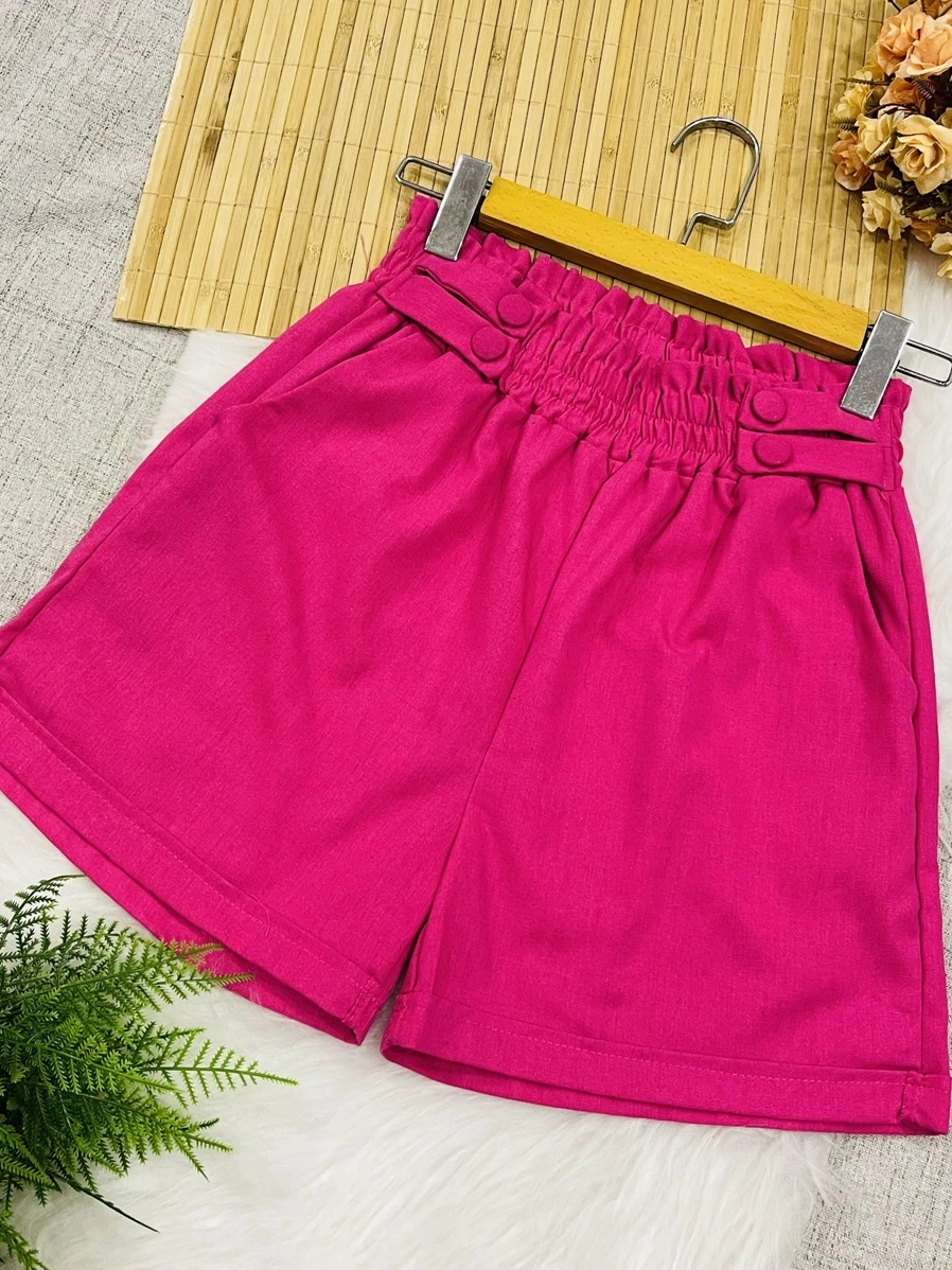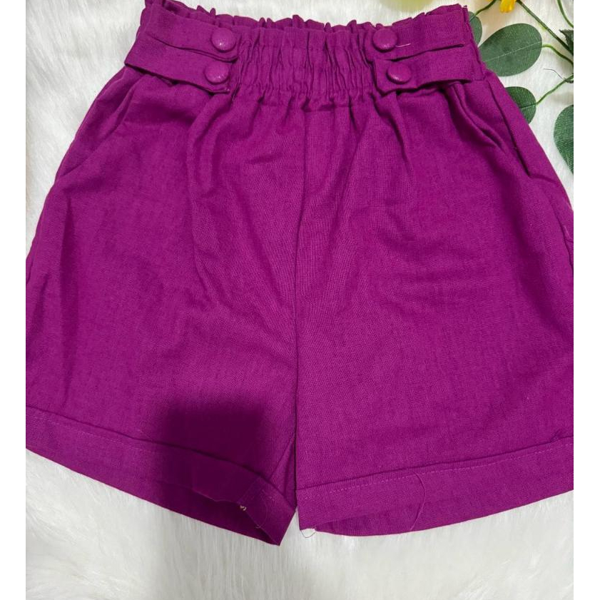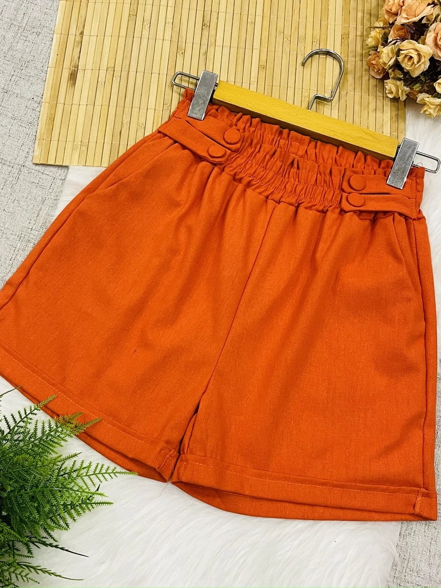 Short Feminino Linho Botões Forrados Elástico Com Bolso Tendencia 2026