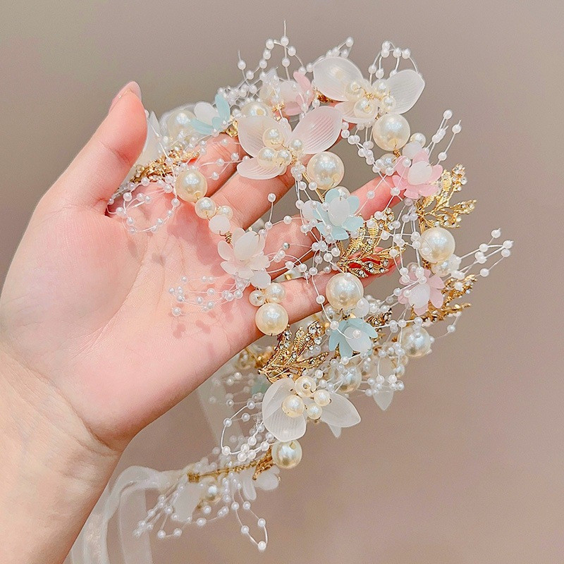 Tiara e Pulseira Infantil Branca de Pérolas – Acessório 2 em 1 para Daminha e Festa Cor Branco