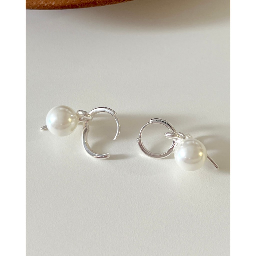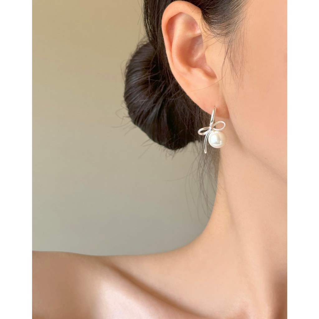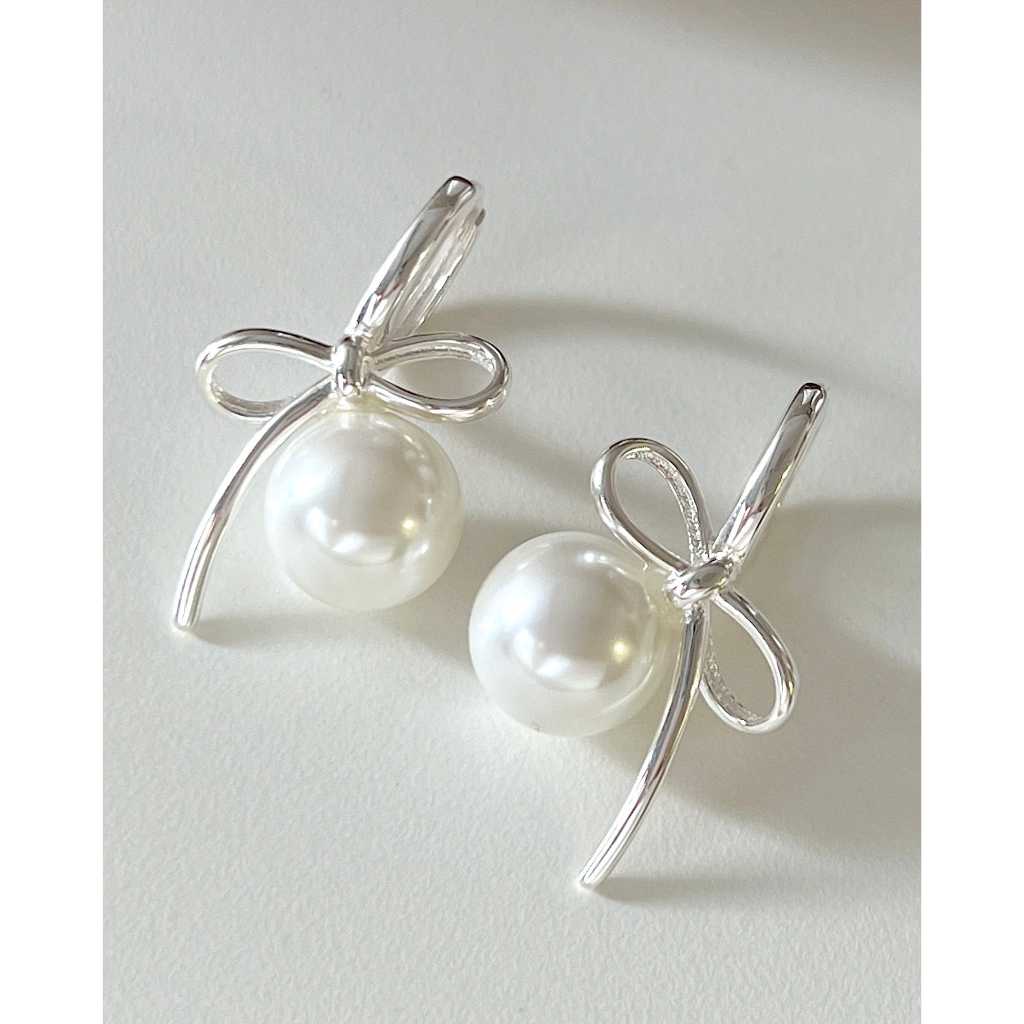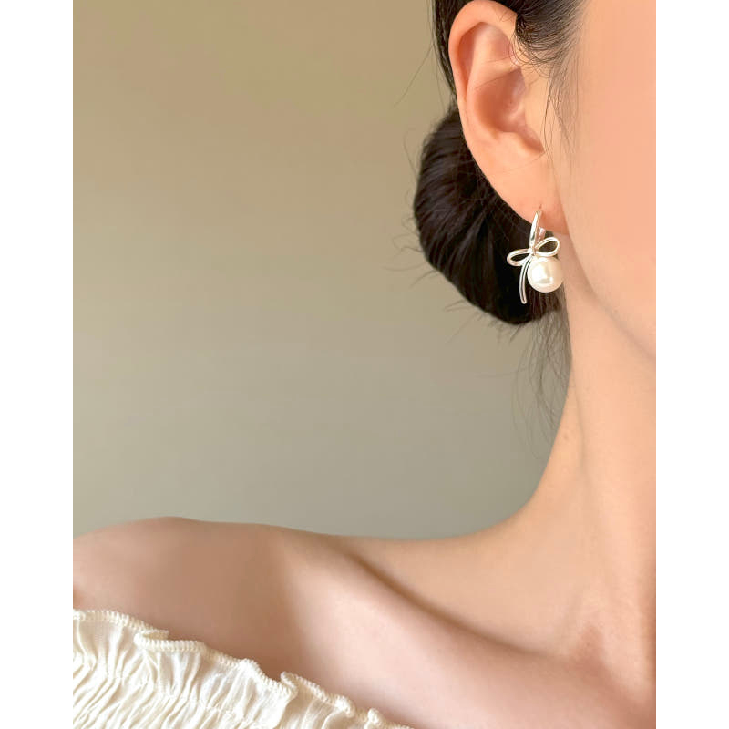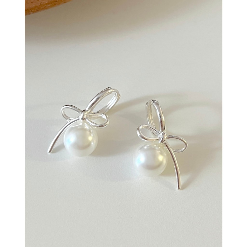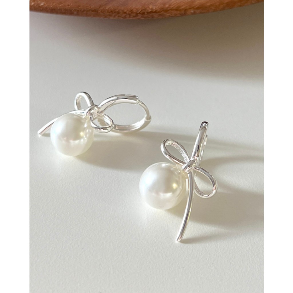 Brincos De Pérola De Um Toque Com Fita De Prata Esterlina 925 Feitos Na Coreia