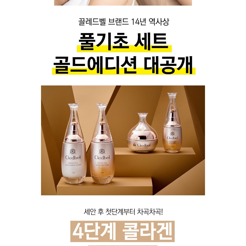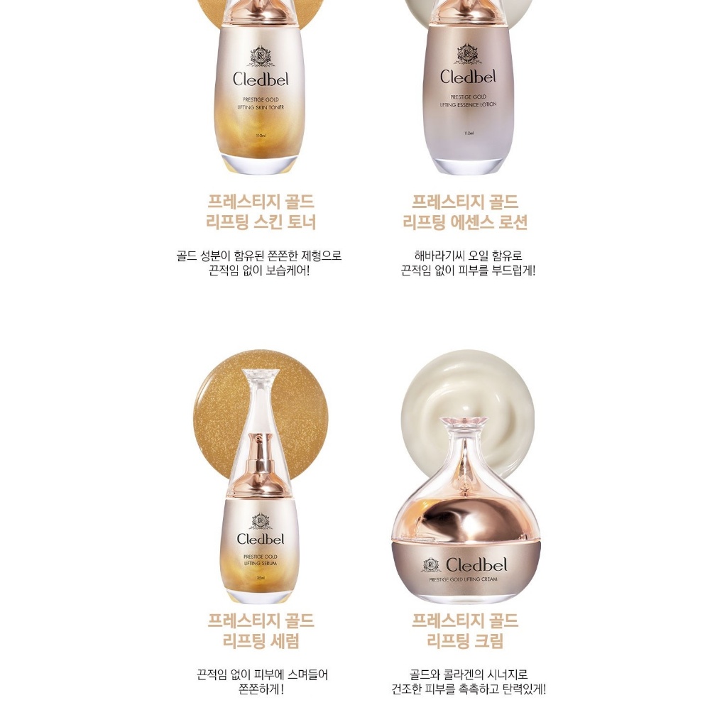 [4 Unidades] Conjunto De Cuidados Com A Pele Cledbel Prestige Gold Collagen Lifting-Toner + Loção + Soro + Creme
