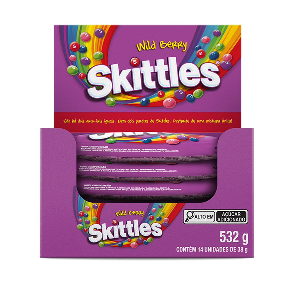 Bala Skittles Wild Berry Com 14 Unidades de 38g