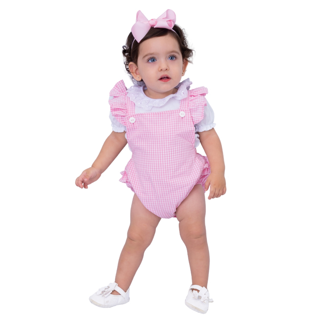 Body Jardineira Infantil Menina 100% Algodão Mundo Nina Kids Roupa De Bebe Romper Bunda Rica