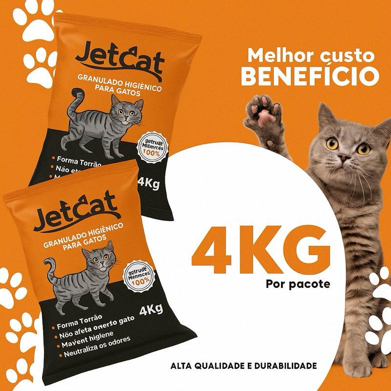 Areia JetCat Granulado Premium Fardo 5 Unidades de 4kg – Máxima Higiene e Controle de Odores