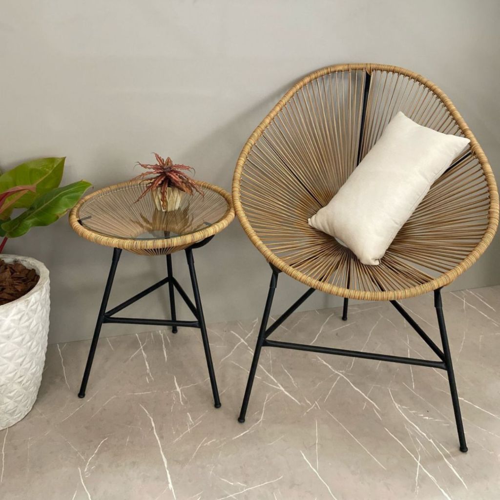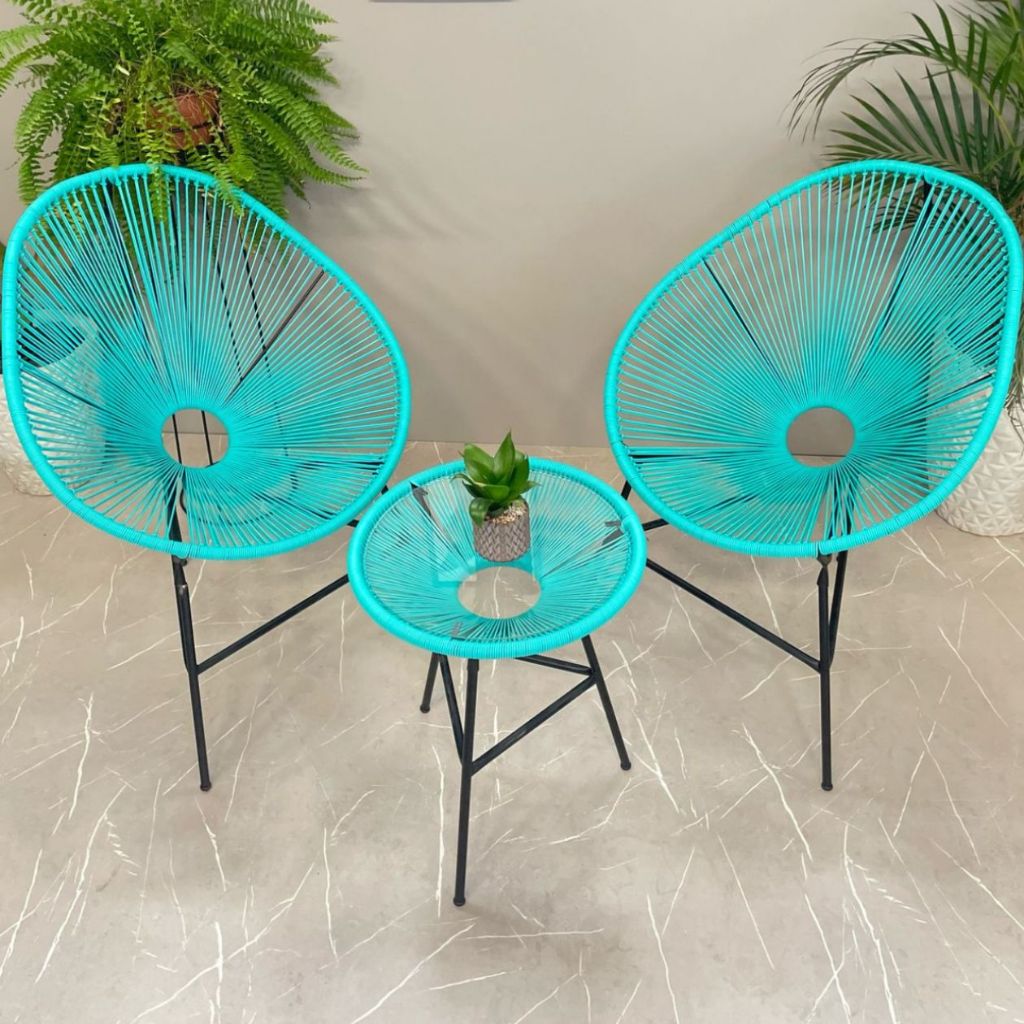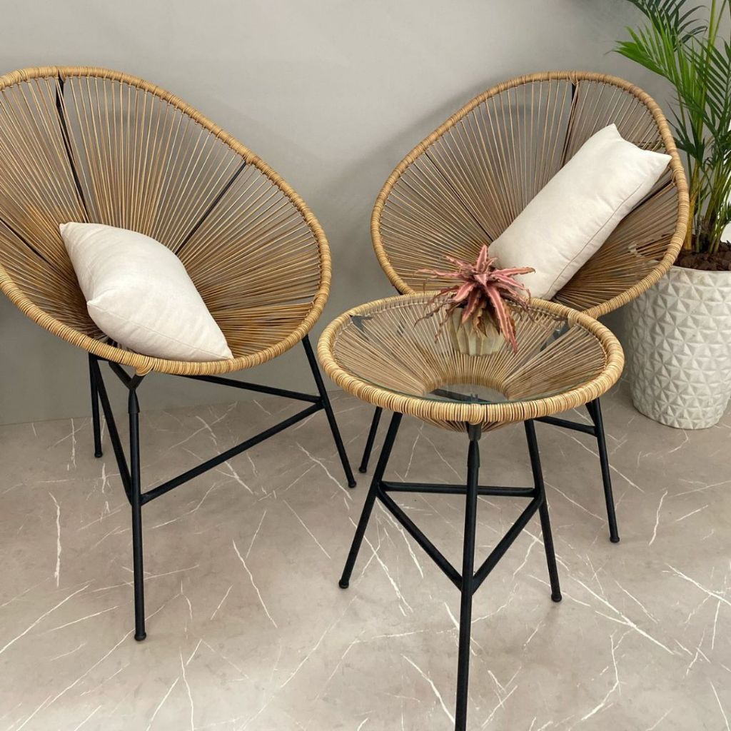 Jogo Cadeira Acapulco Mesa de Centro Fibra Sintética Decoração Área Externa