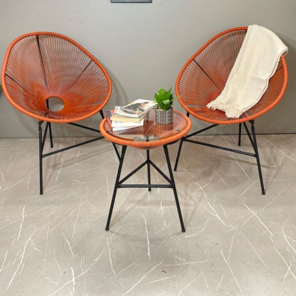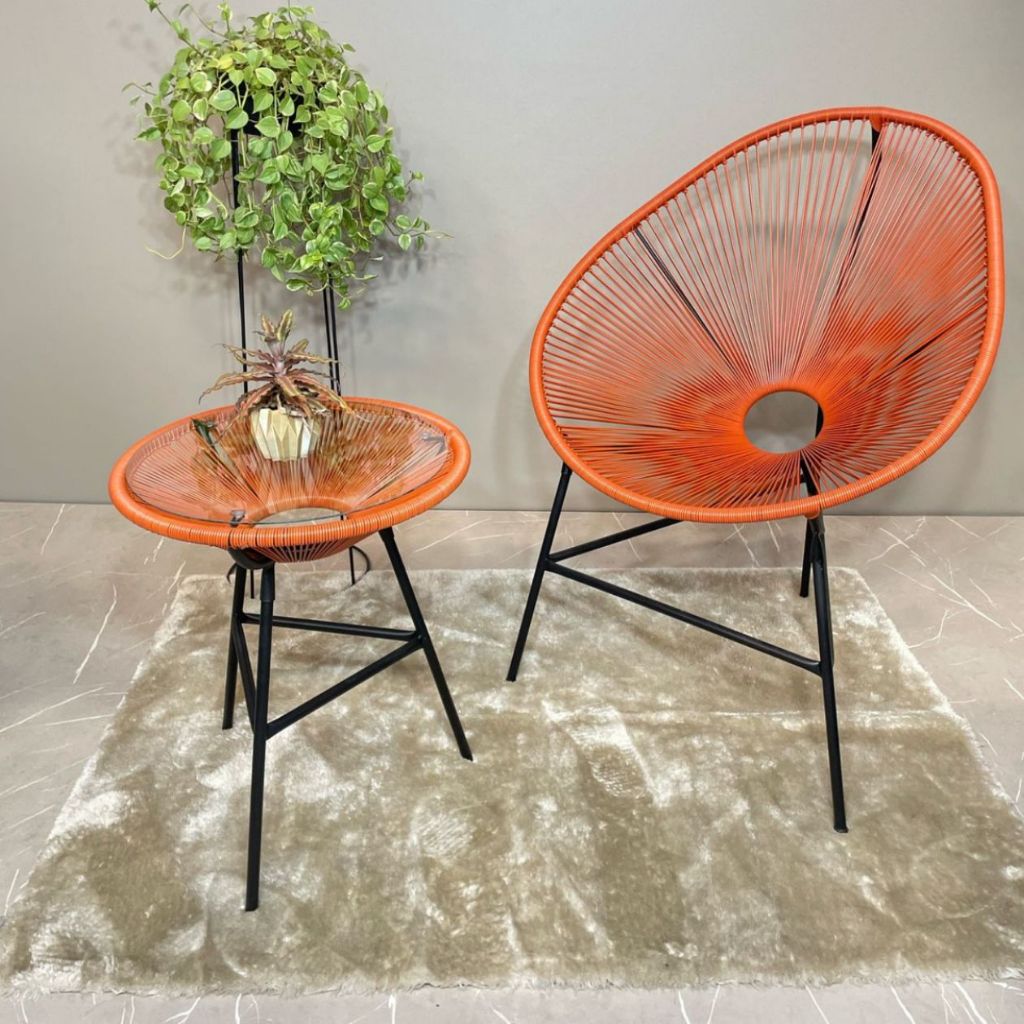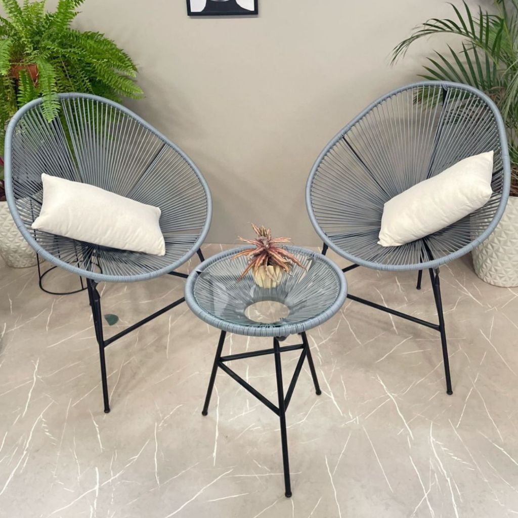 Jogo Cadeira Acapulco Mesa de Centro Fibra Sintética Decoração Área Externa