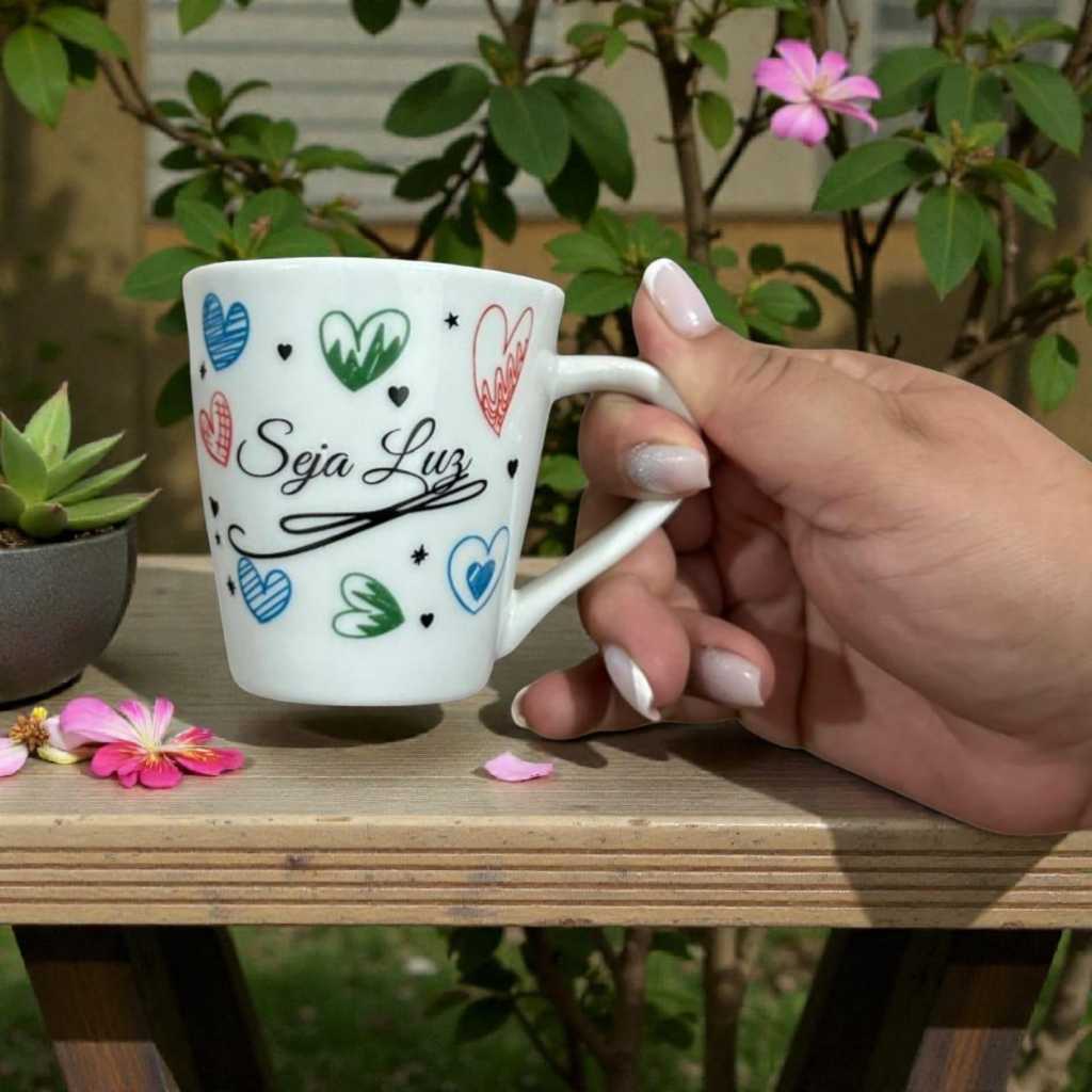 Caneca Porcelana Xícara Café Chá Personalizada Gratidao Fé Amor Frases de Motivação