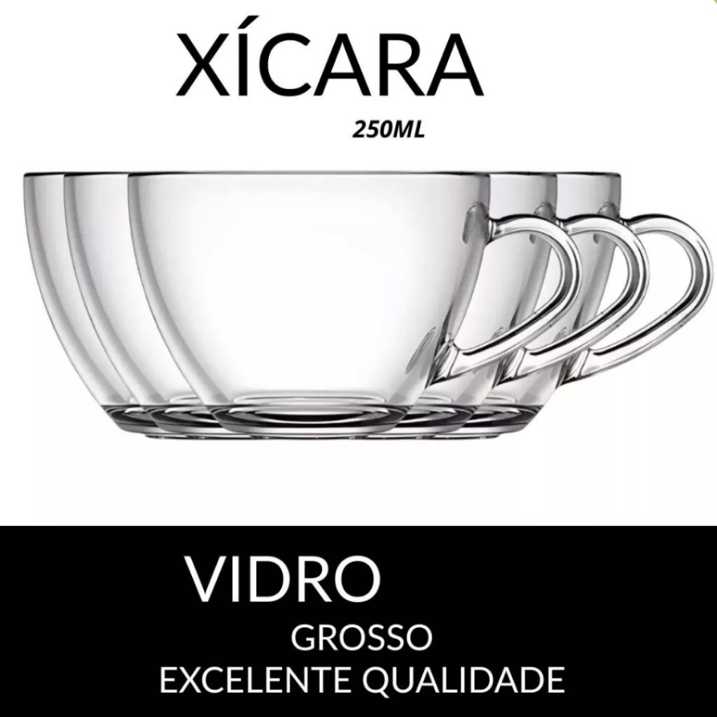 Jogo De Xícaras Em Vidro 250ml Kit Canecas 6 Peças Para Chá Café