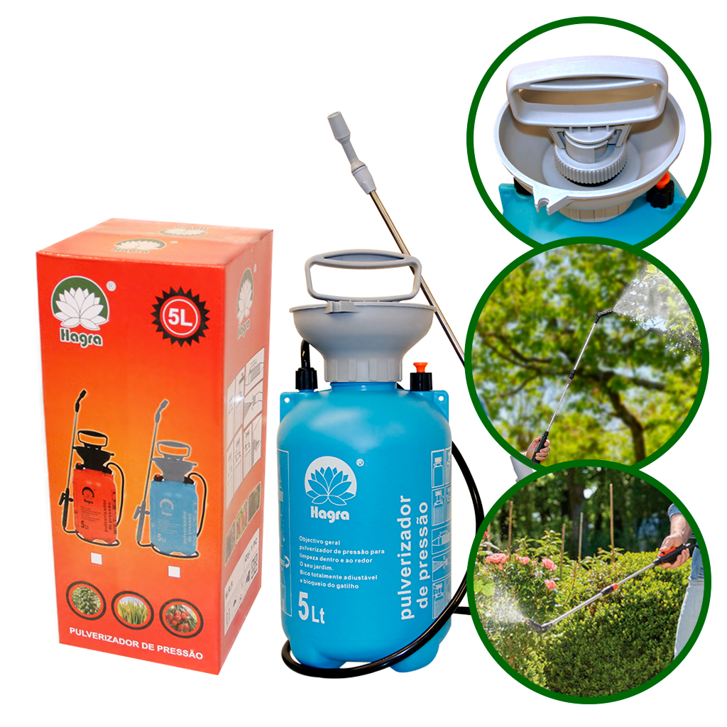 Pulverizador Borrifador 5 Litros Com Compressão Prévia Jato Regulável Manual Jardim