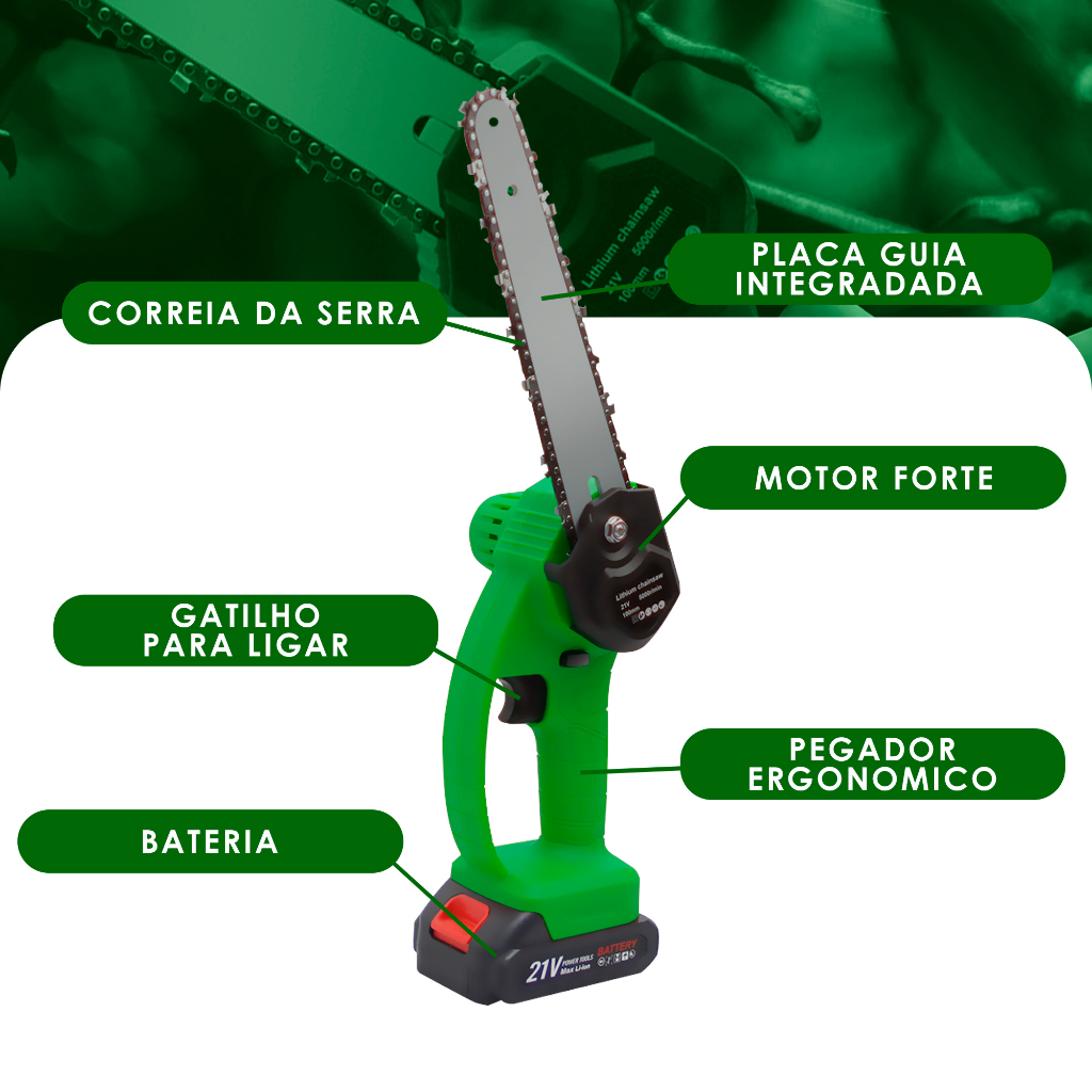 Mini Motosserra Elétrica 8 Polegadas Recarregável Bivolt 110v/220v 2 Baterias + Maleta
