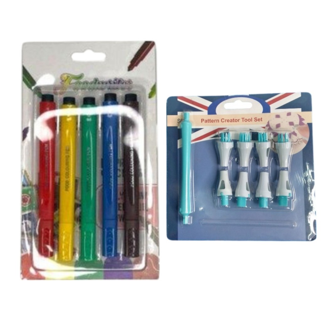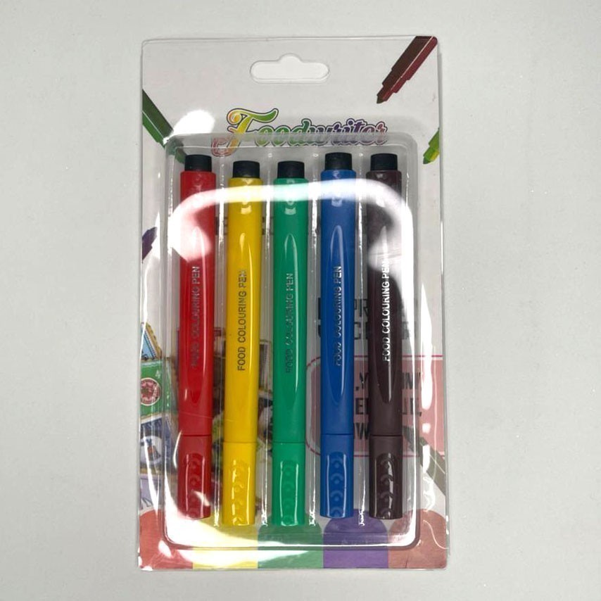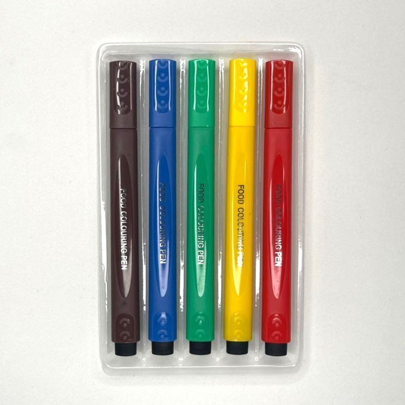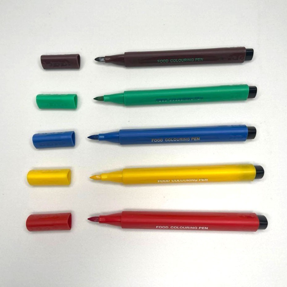 Kit Caneta de Tinta Alimentícia Comestível Preto 2 peças ou Colorido 5 peças