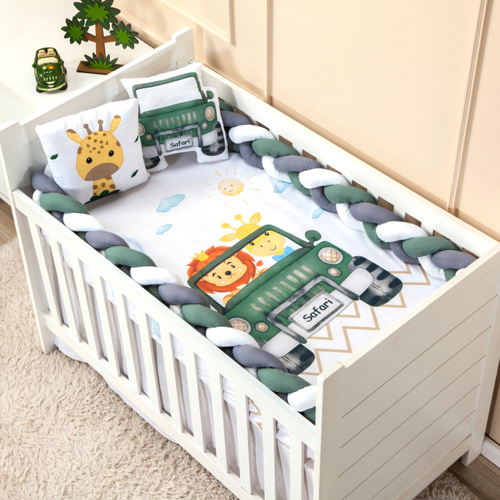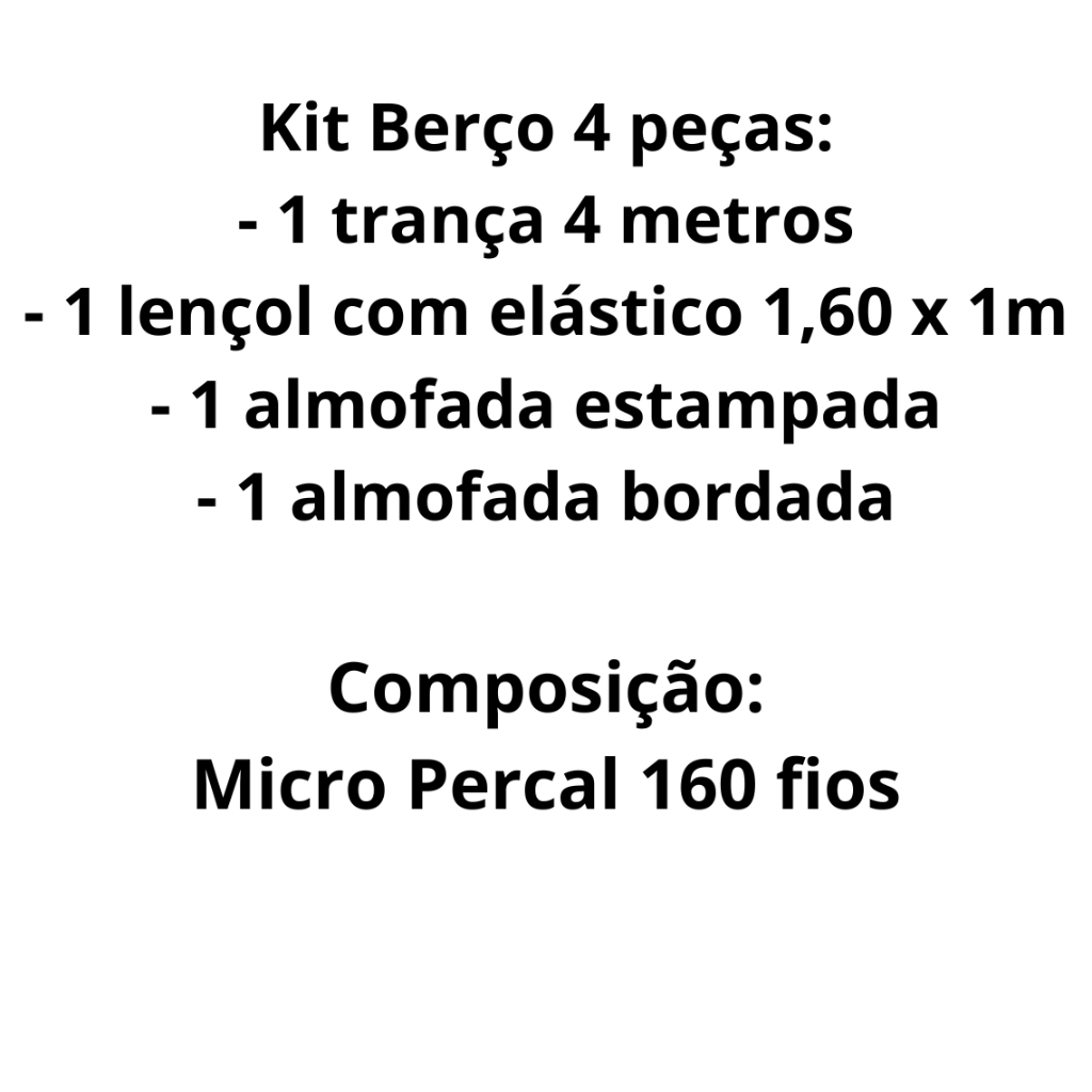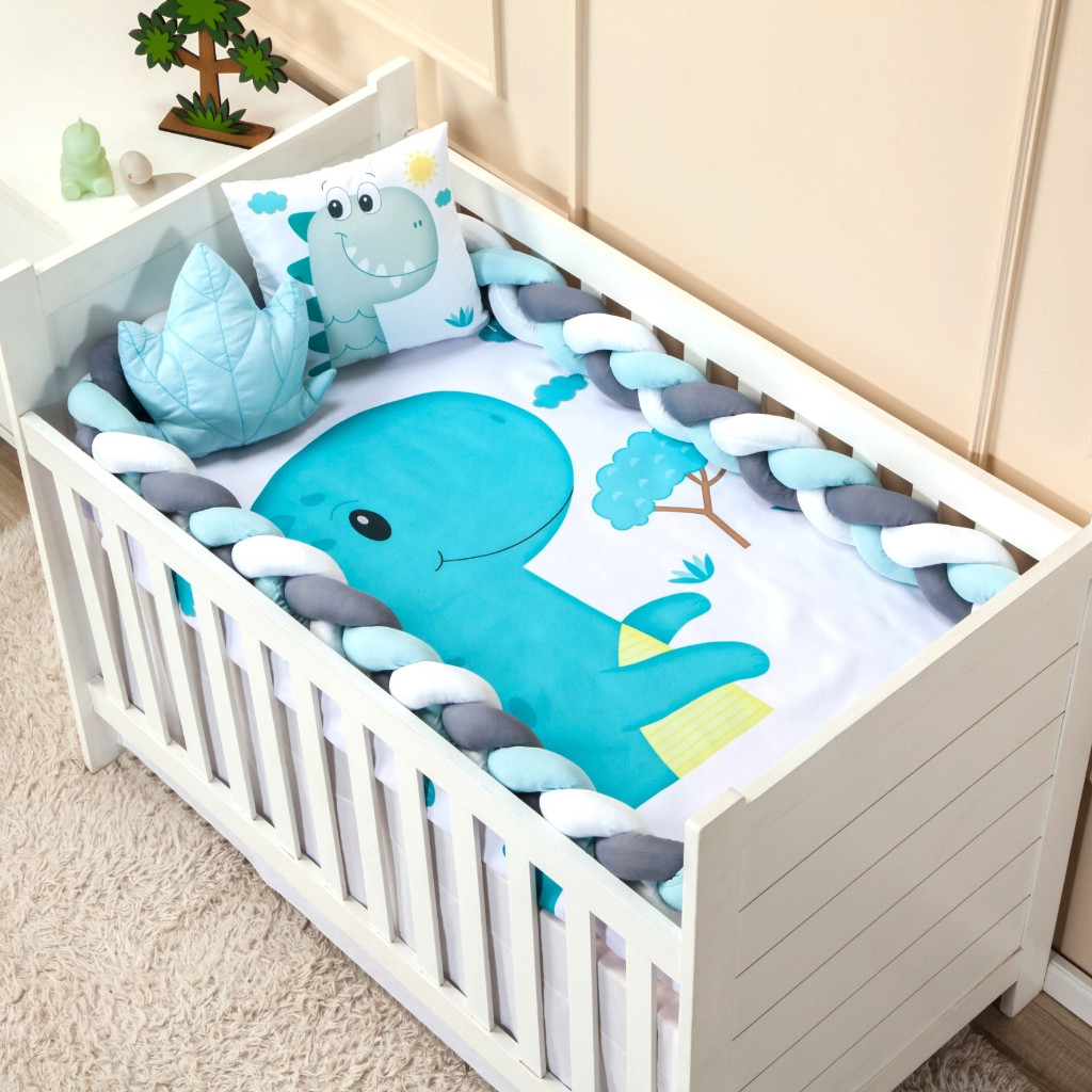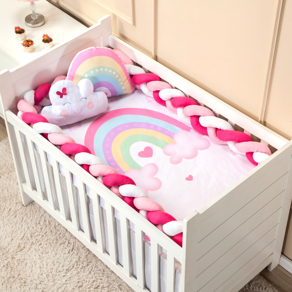 Kit berço Americano Nacional 4 peças menina menino Protetor trança 4 metros lençol almofada bordada