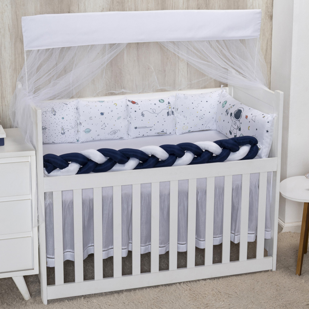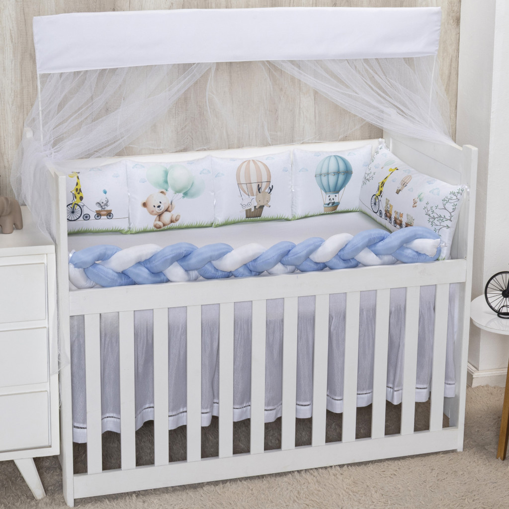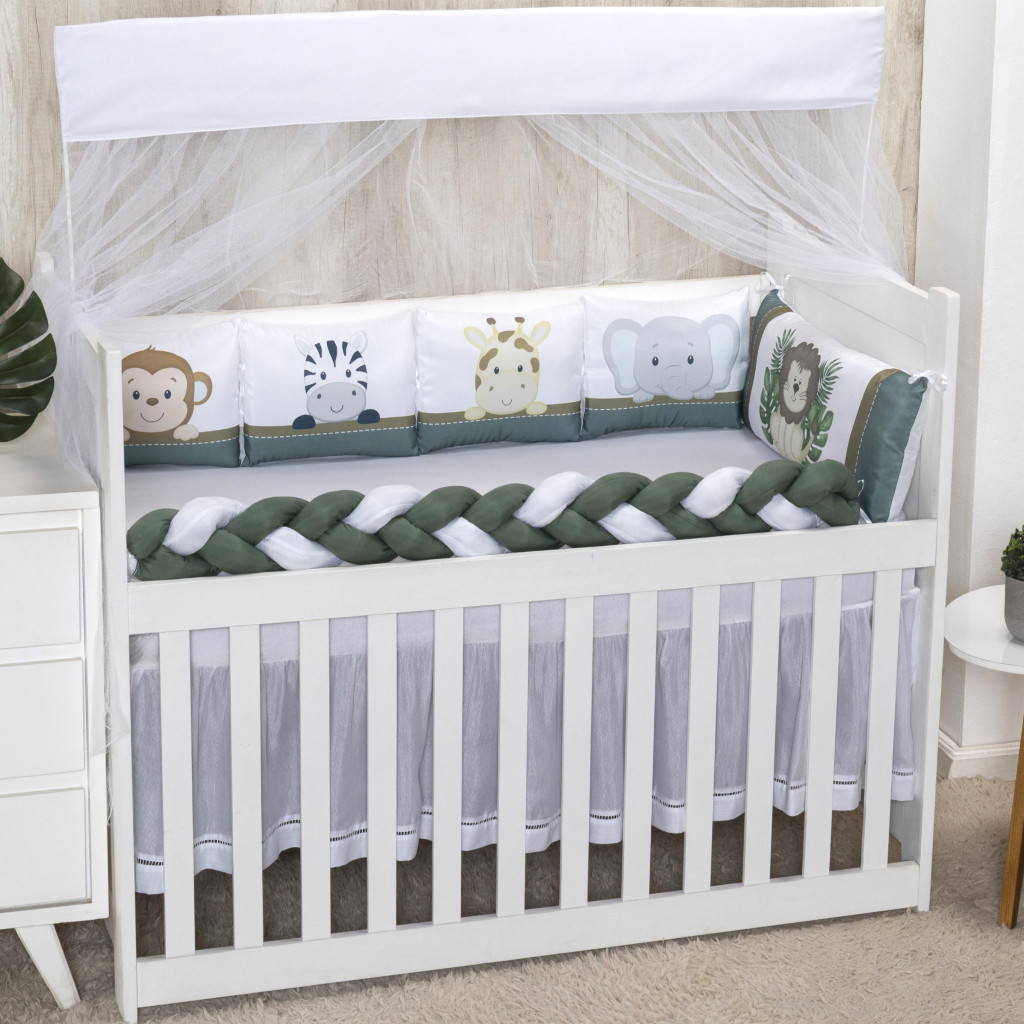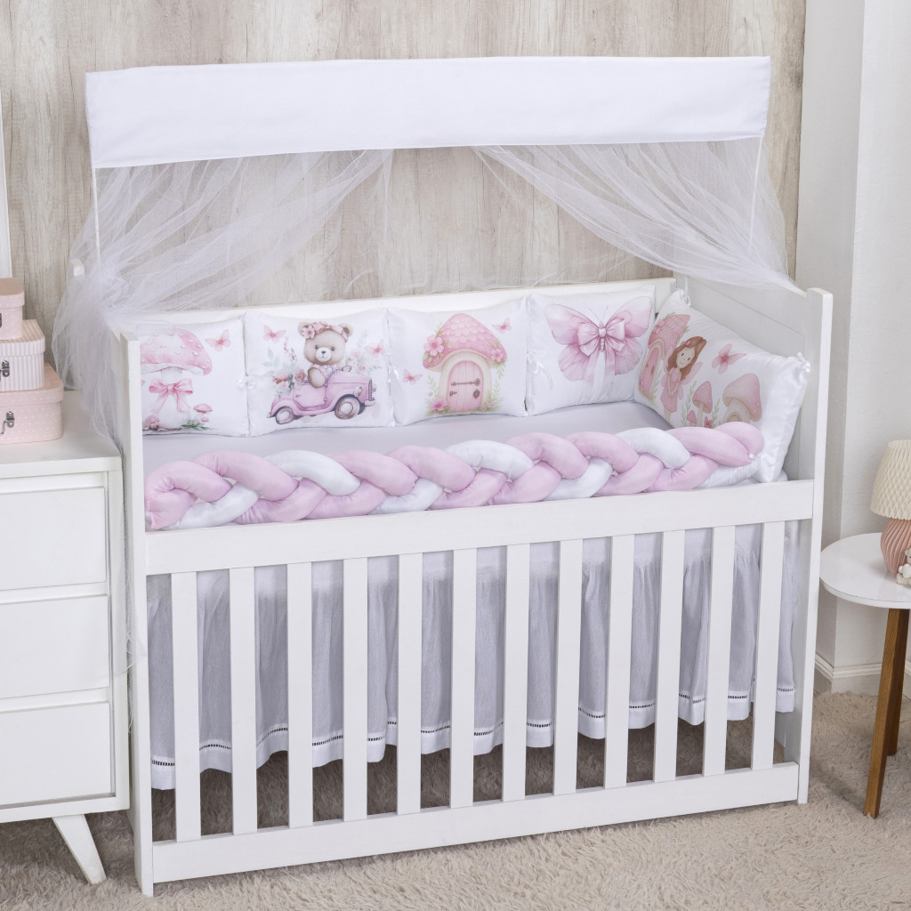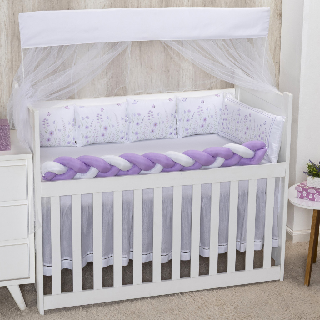 Kit Berço 10 peças Mosquiteiro Protetor Trança Cabeceira Micropercal padrão Americano Nacional