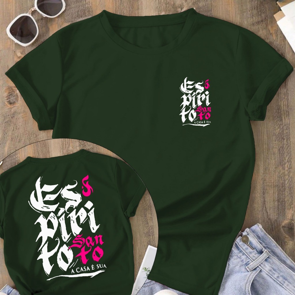 Camiseta Feminina Blusa ESPIRITO SANTO A CASA É SUA Camisa Manfinity 100% algodão Street Wear