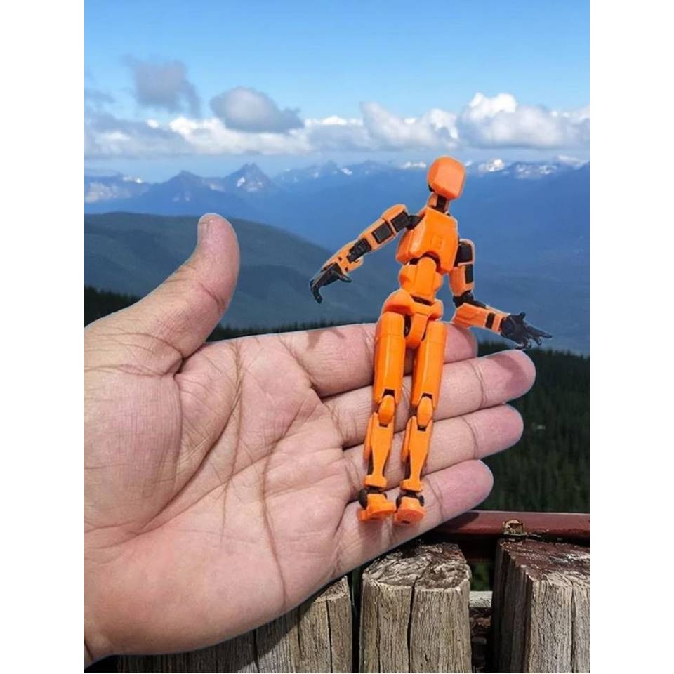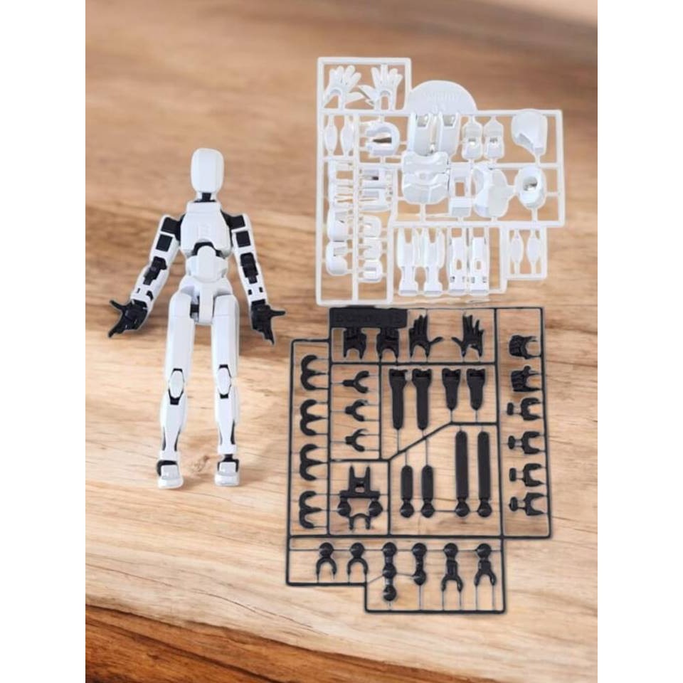 Kit 02 Bonecos 100% Articulado Dummy 13 Brinquedo Manequim Infantil 14cm DESMONTADO Laranja/Preto Branco/Preto
