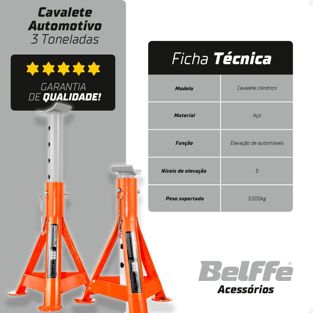 Par De Cavaletes Cilindrico 3 Toneladas Automotivo Profissional Reforçado Com Para Veículos Belffe