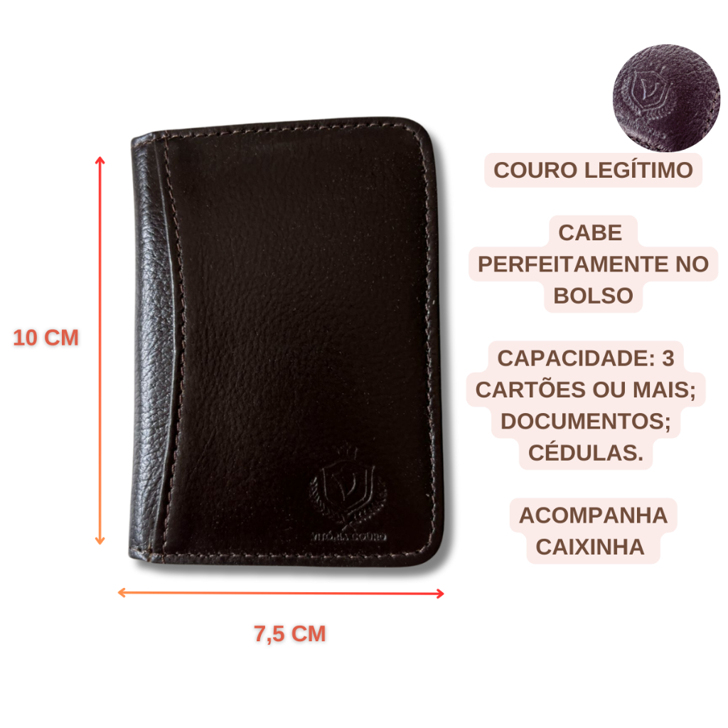 CARTEIRA COURO LEGITIMO MARROM PRETA MASCULINA FEMININA DOCUMENTO CNH DINHEIRO MOEDA DIA NAMORADOS