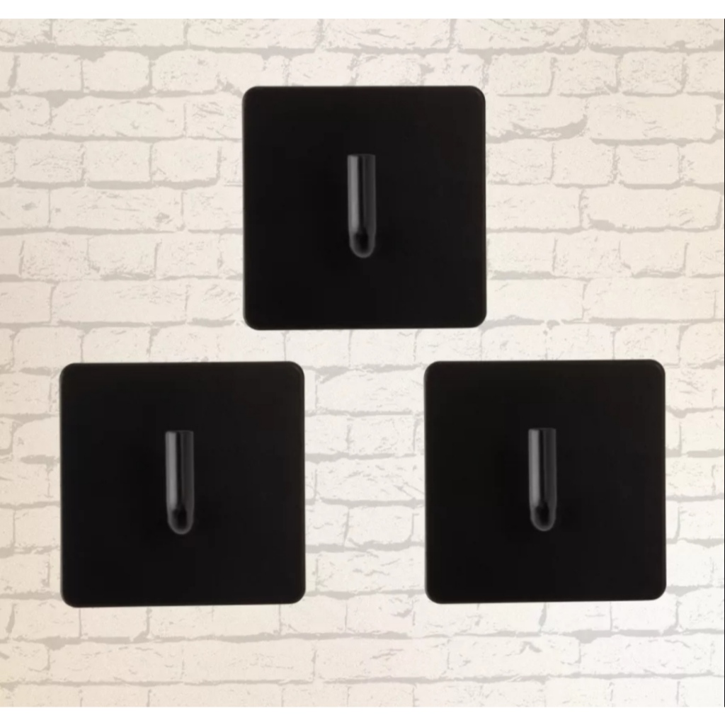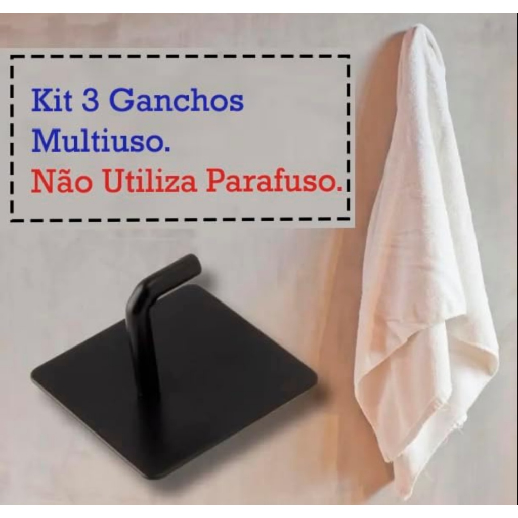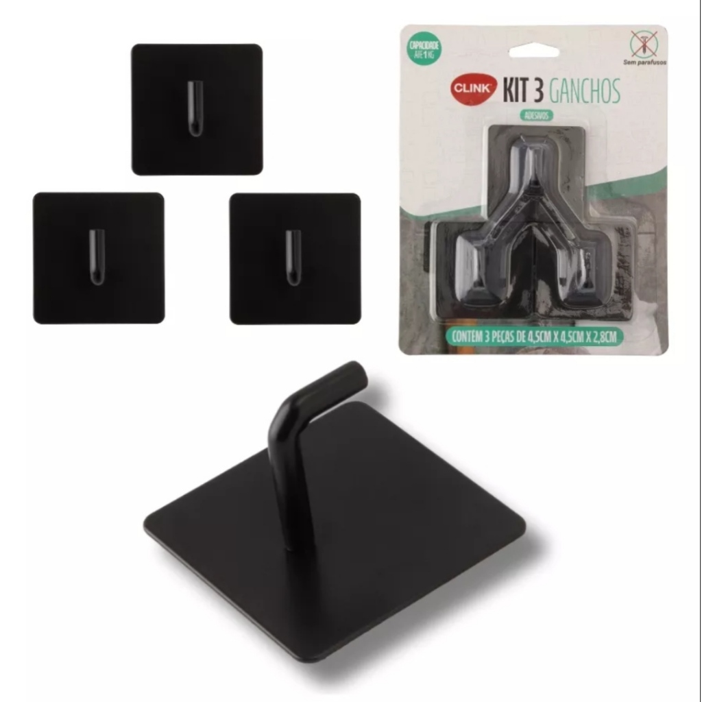 KIT TRES GANCHOS EM METAL REFORCADO MULTIUSO DE PAREDE NA COR PRETO