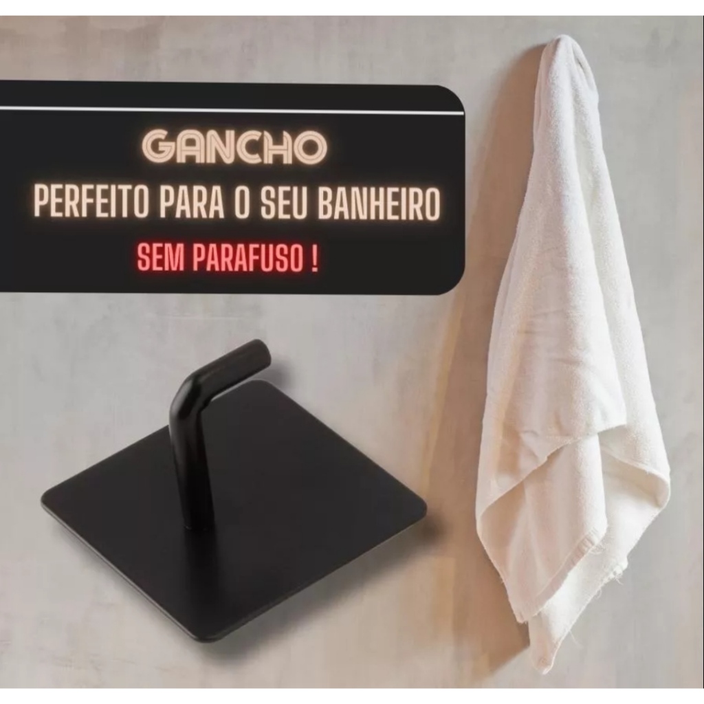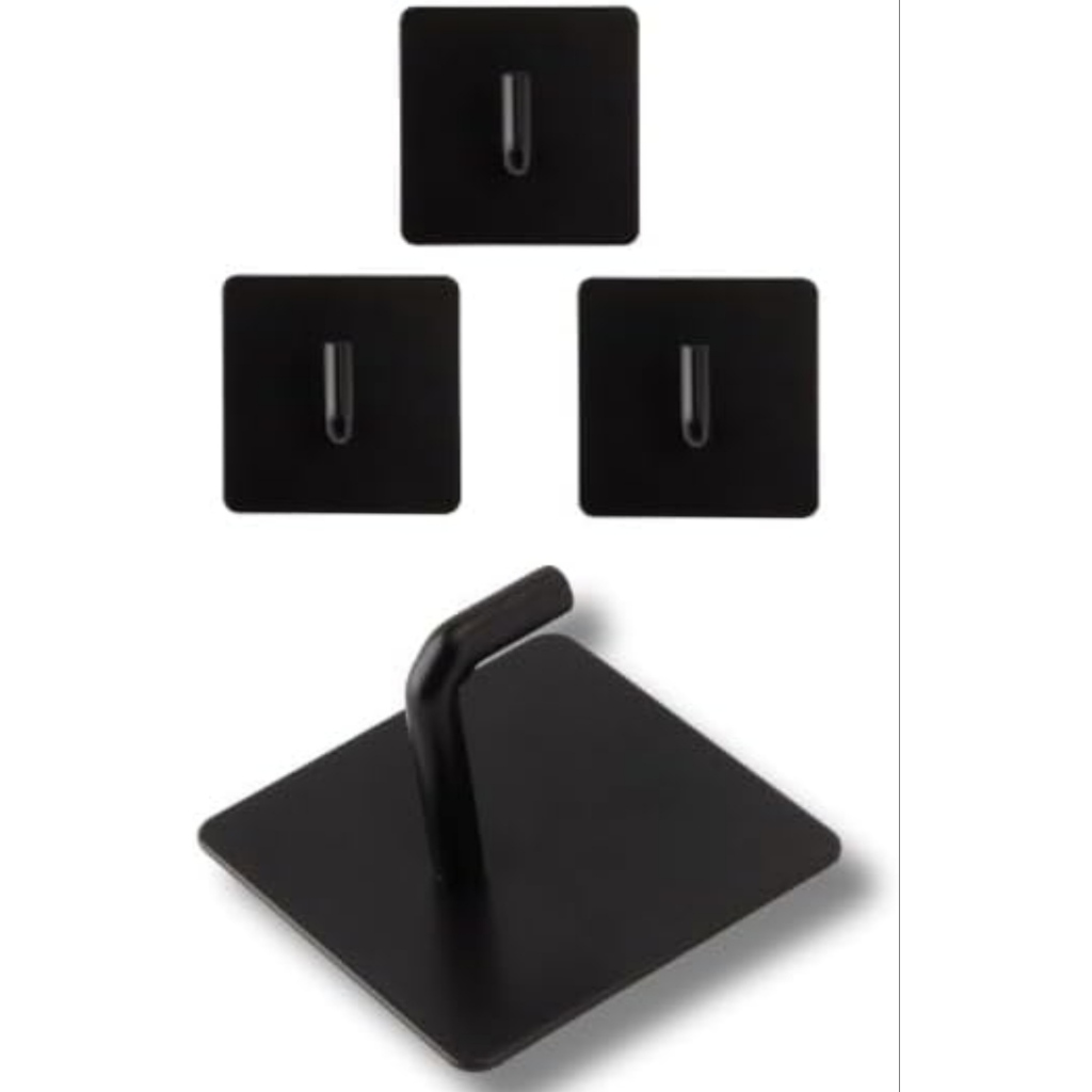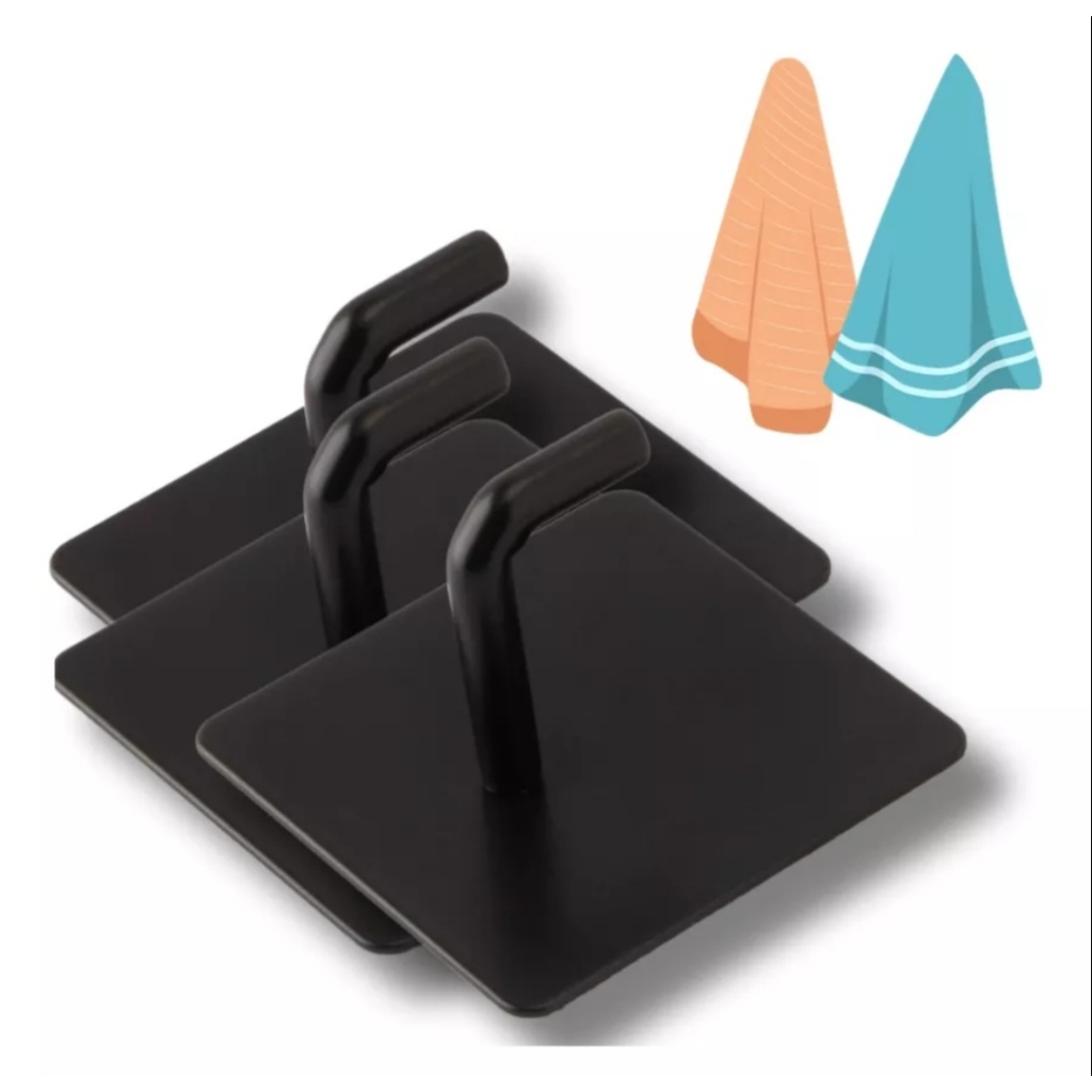 KIT TRES GANCHOS EM METAL REFORCADO MULTIUSO DE PAREDE NA COR PRETO
