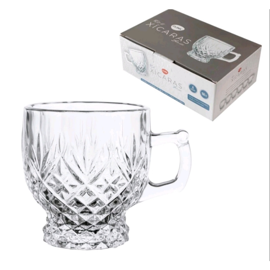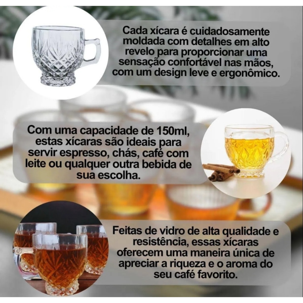 CONJUNTO SEIS XICARAS DE CAFE CHA EM VIDRO LUXO ELEGANTE DE 150ml MODELO ANISE