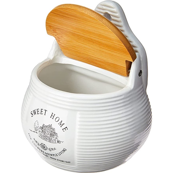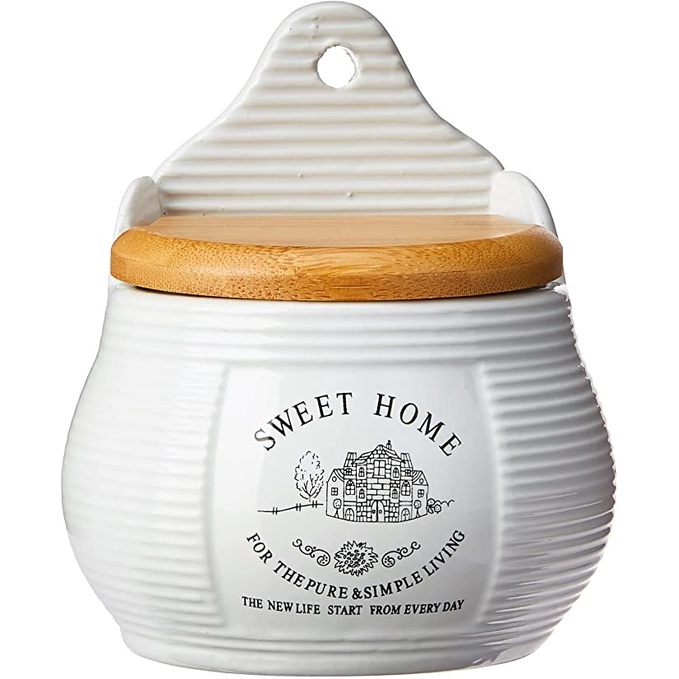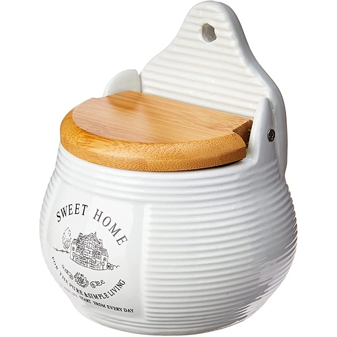 Saleiro de Parede em Cerâmica com Tampa de Bambu Sweet Home - Lyor