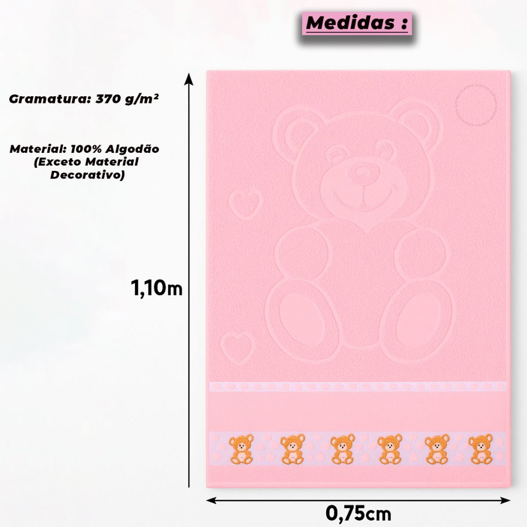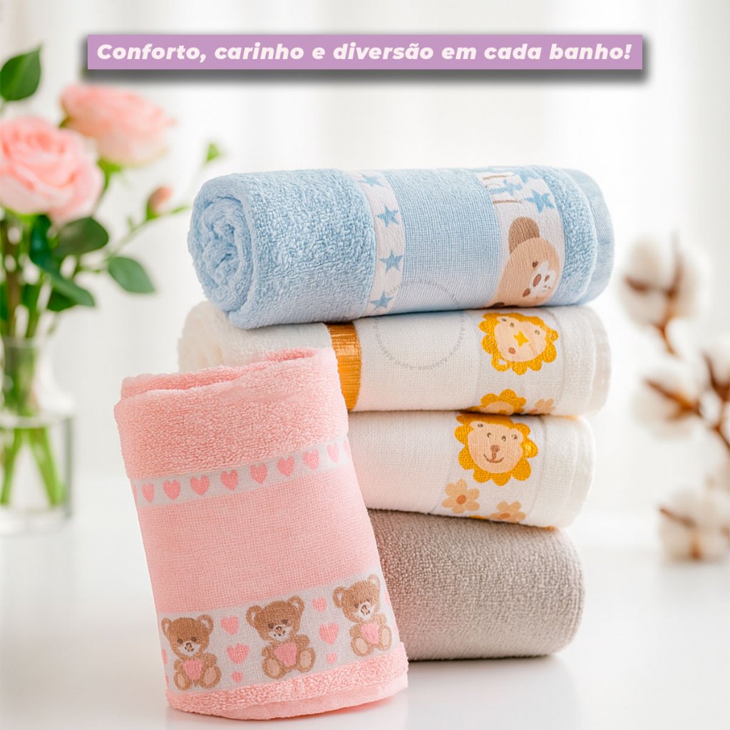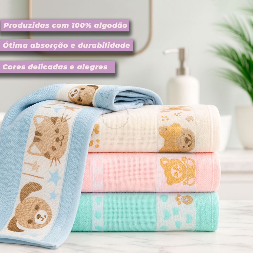 Toalha de Banho Infantil Menina e Menino 100% Algodão Kids Suave Macia Para Bordar Ponto Cruz