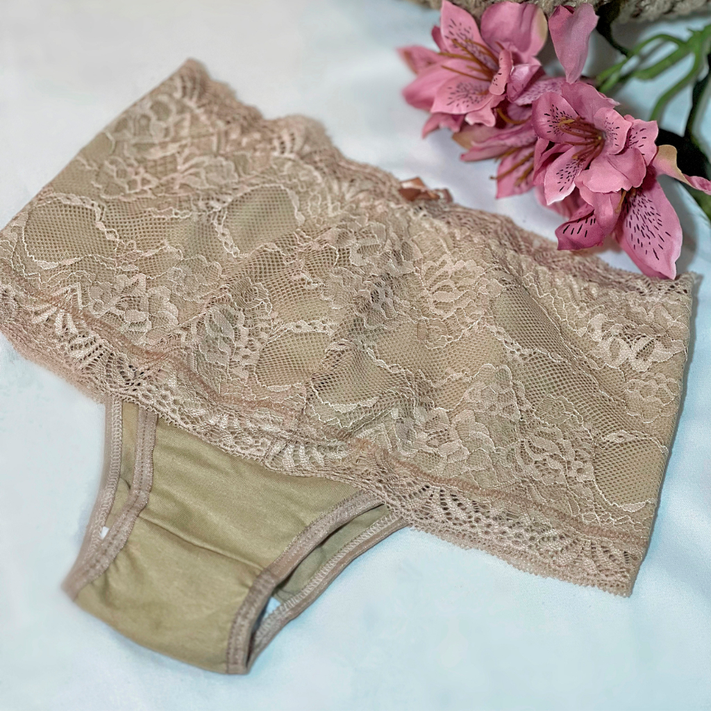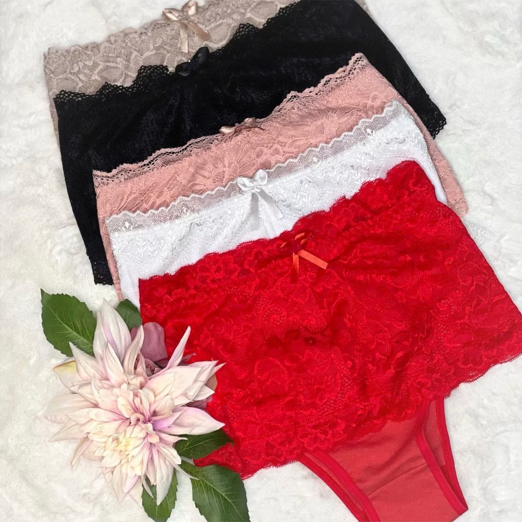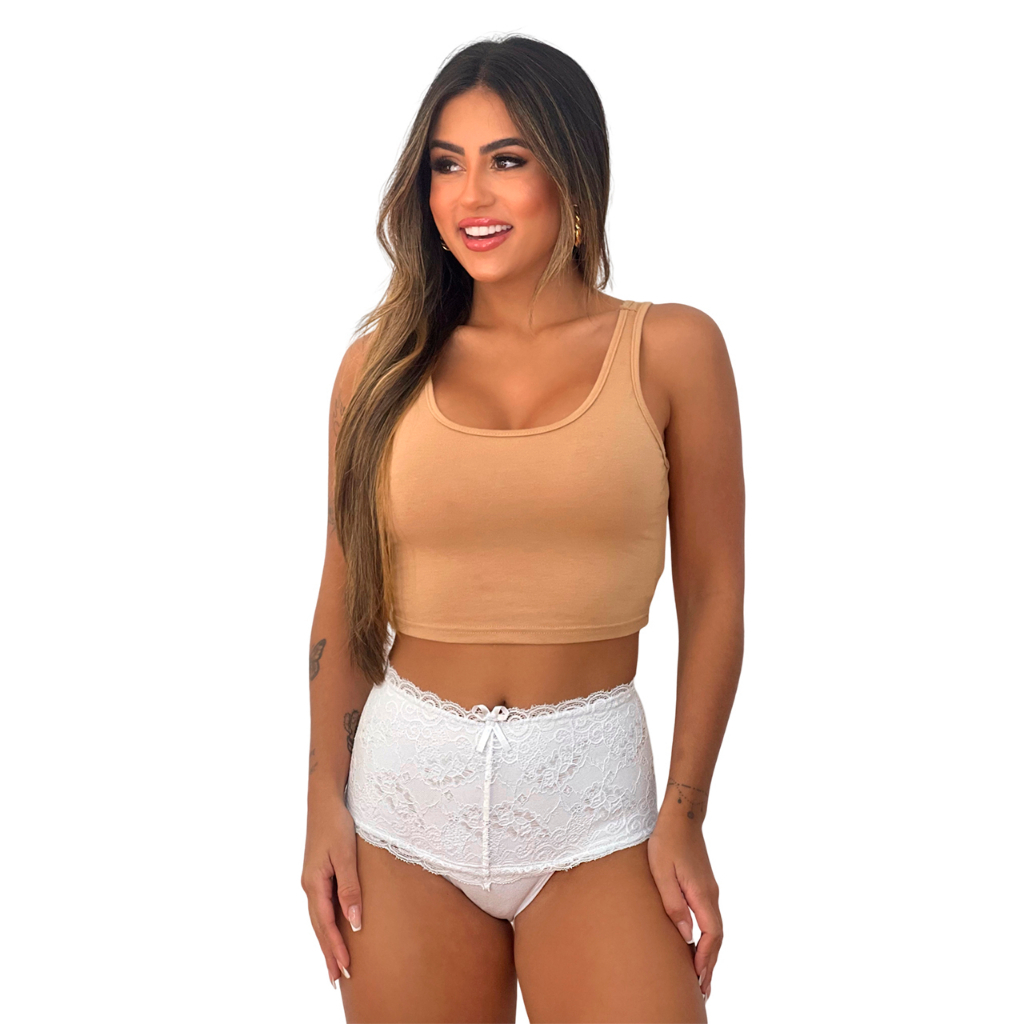 Kit 5 Calcinha Cinta Algodão Fátima Adulto Cotton Modeladora Cintura Alta Tanga Feminina Renda