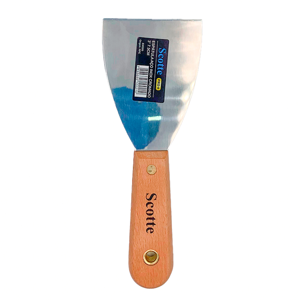Espátula 7,5cm Aço Inox Cabo Madeira Scotte Profissional Gesso Massa Drywall