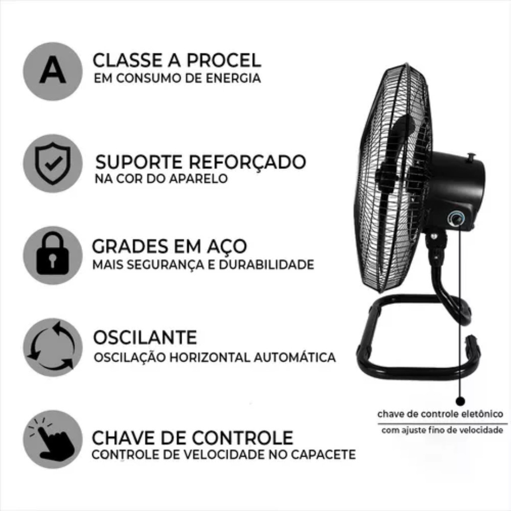 Ventilador Mesa Ventisol Wind New 50cm 127v Preto Oscilante Refrescante Confortável Comercial Grandes Ambientes