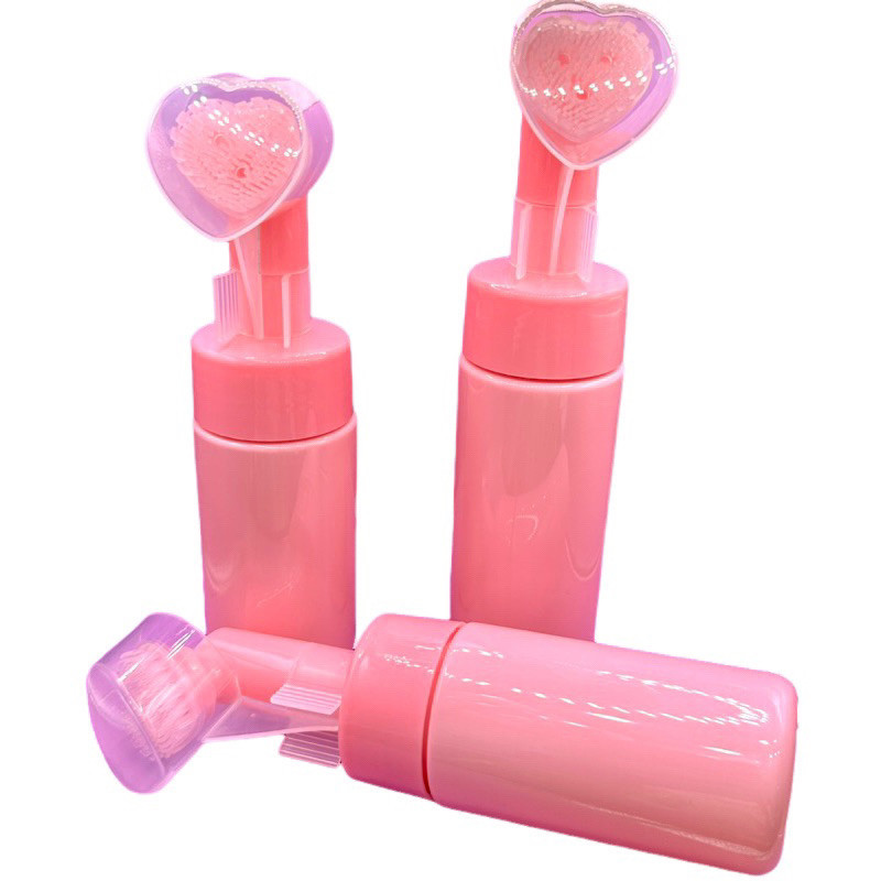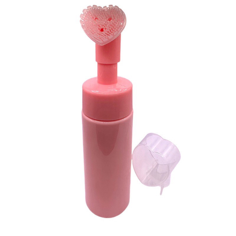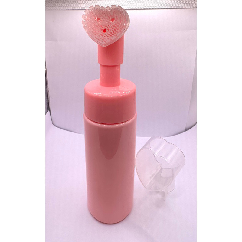 Frasco Pump Espumador Rosa com Escova de Silicone em Coração Helen Color – Limpeza Facial e Massagem (100ml/150ml) . Og