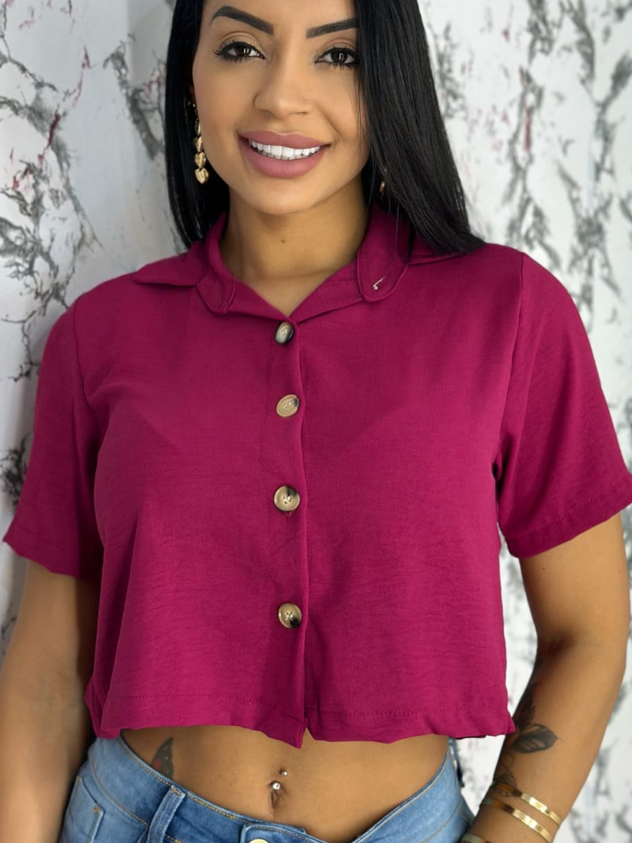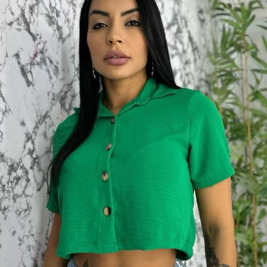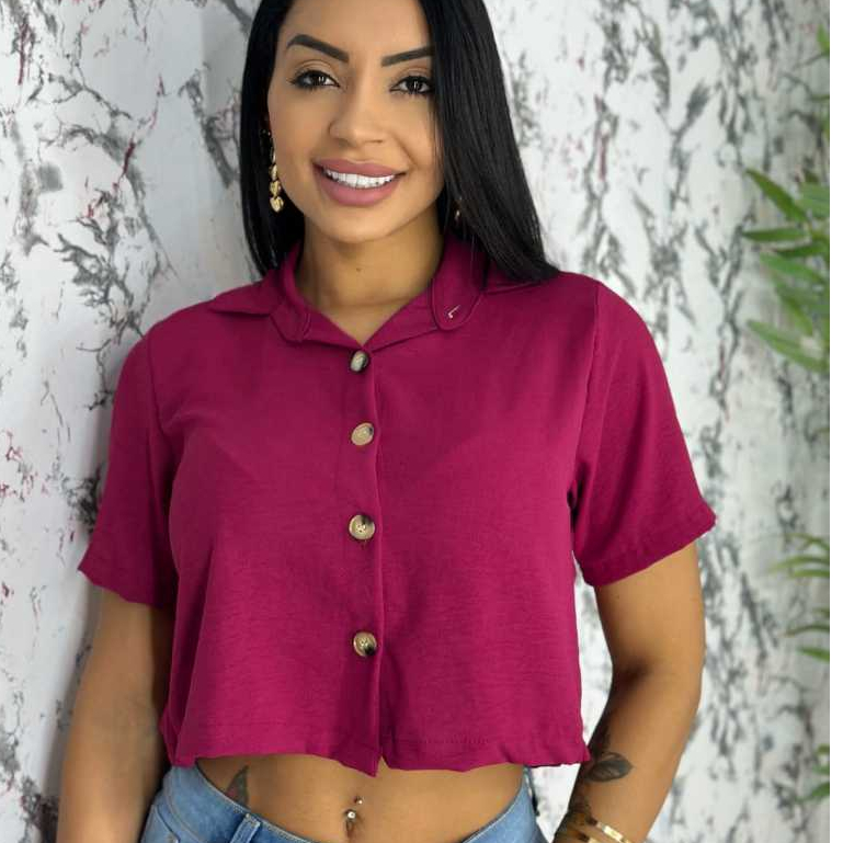Blusa Feminina da Moda Camisas Femininas Plus Size Blusinhas Estilo Cropeed no Crepe Duna P, M,G,GG