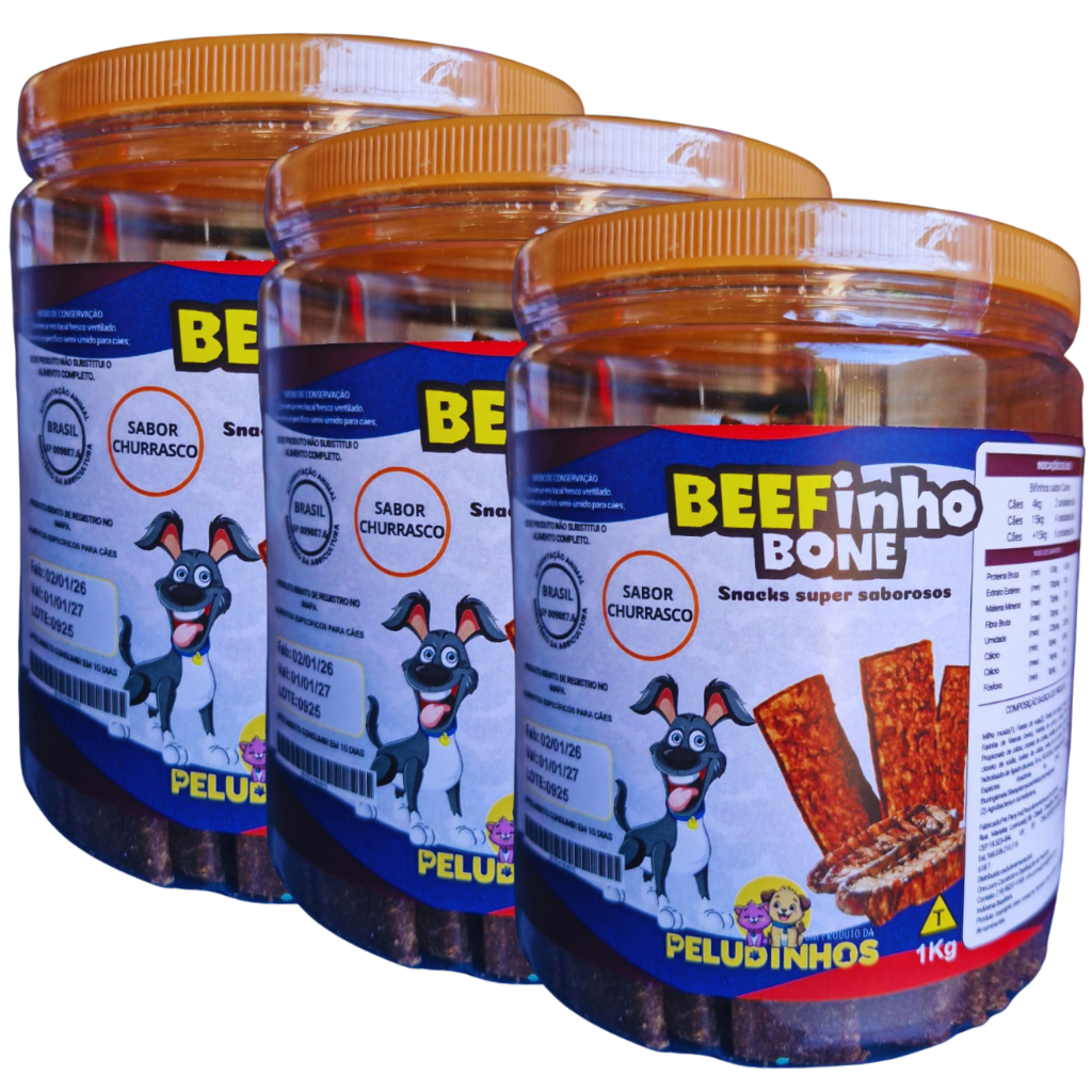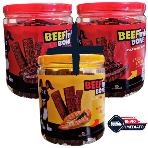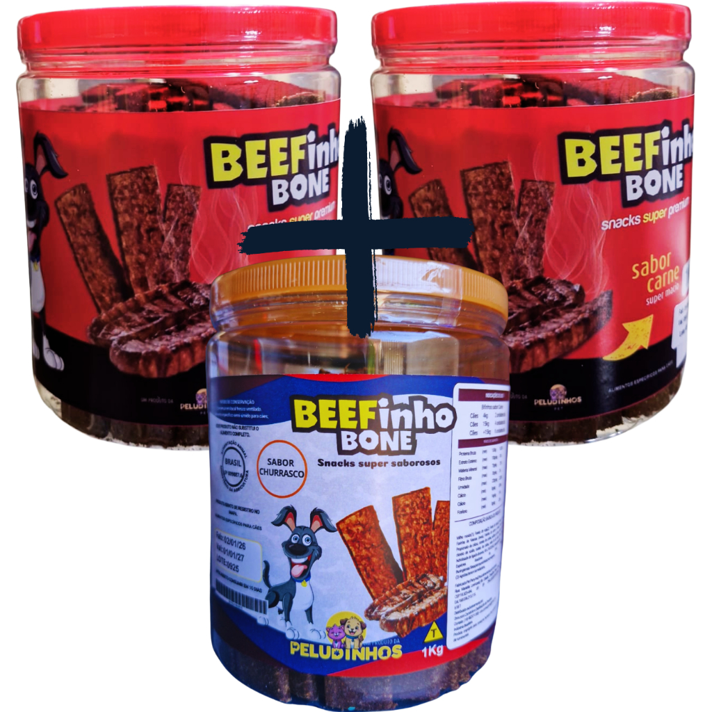 Kit 3 Bifinho BEEFinho Bone 1 KG Petiscos Cães Cachorro Pet Premium - 1 CARNE + 2 FRANGO