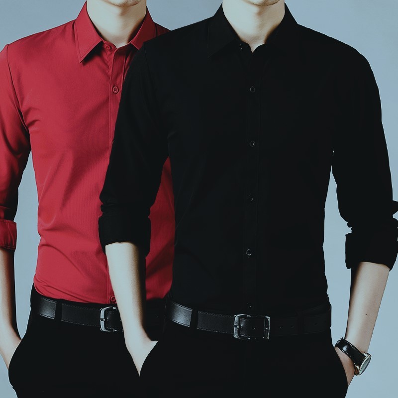 Kit 2 Camisa Social Masculina Manga longa Slim Fit
