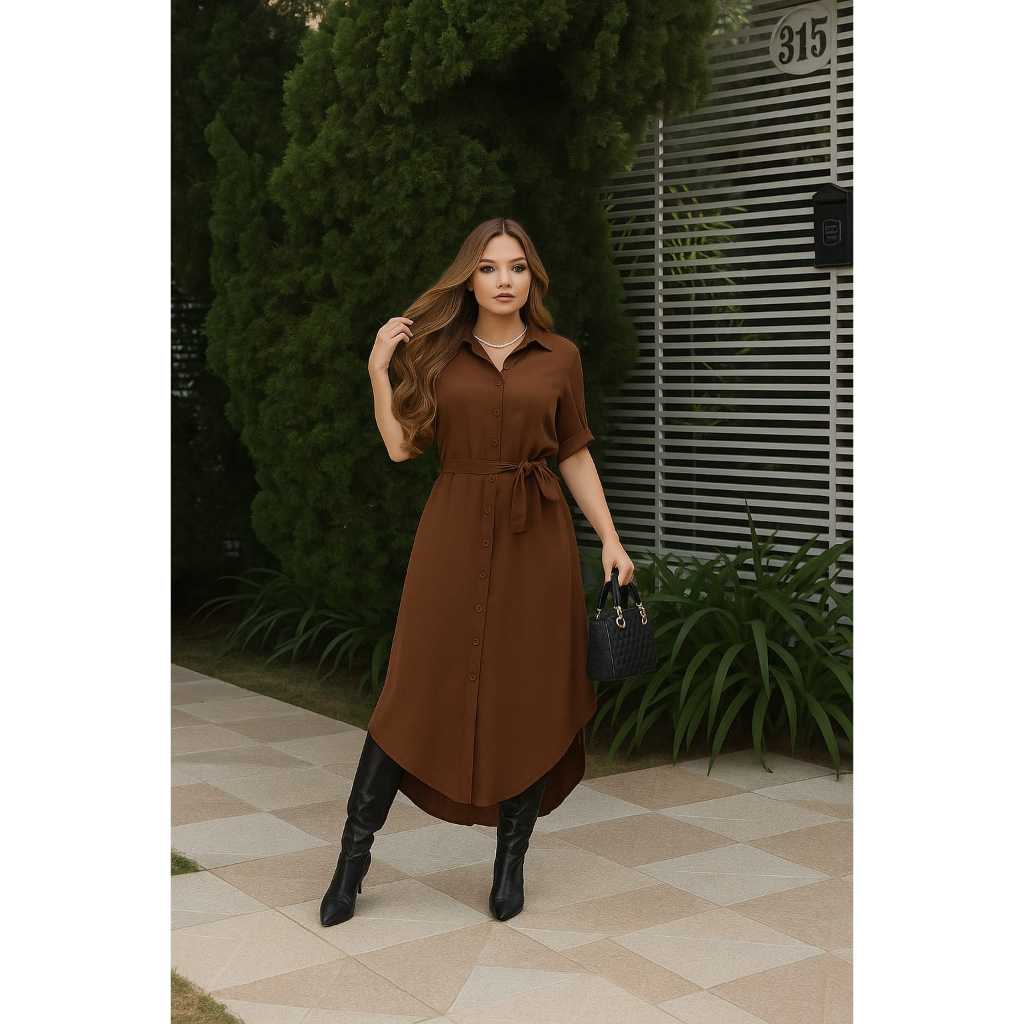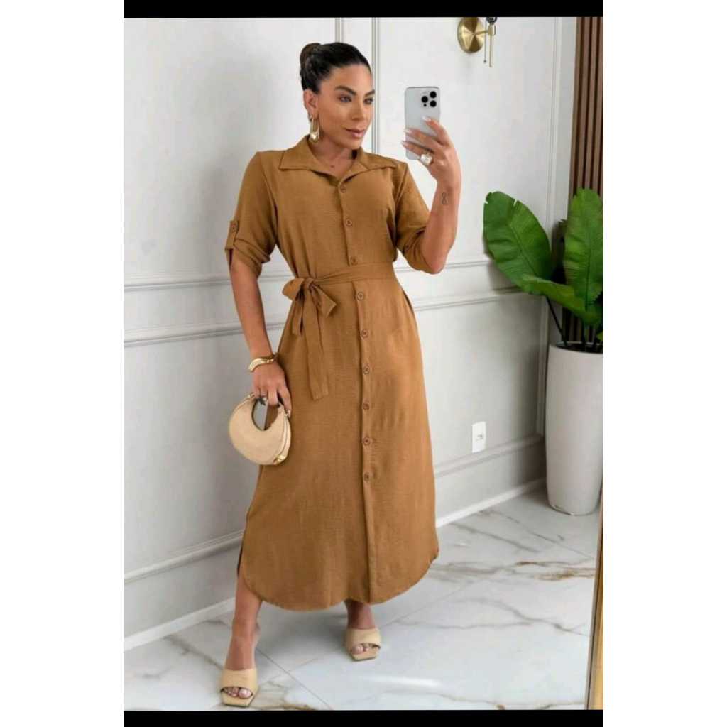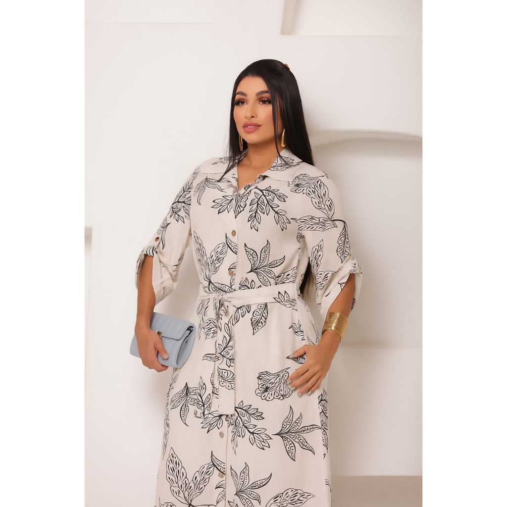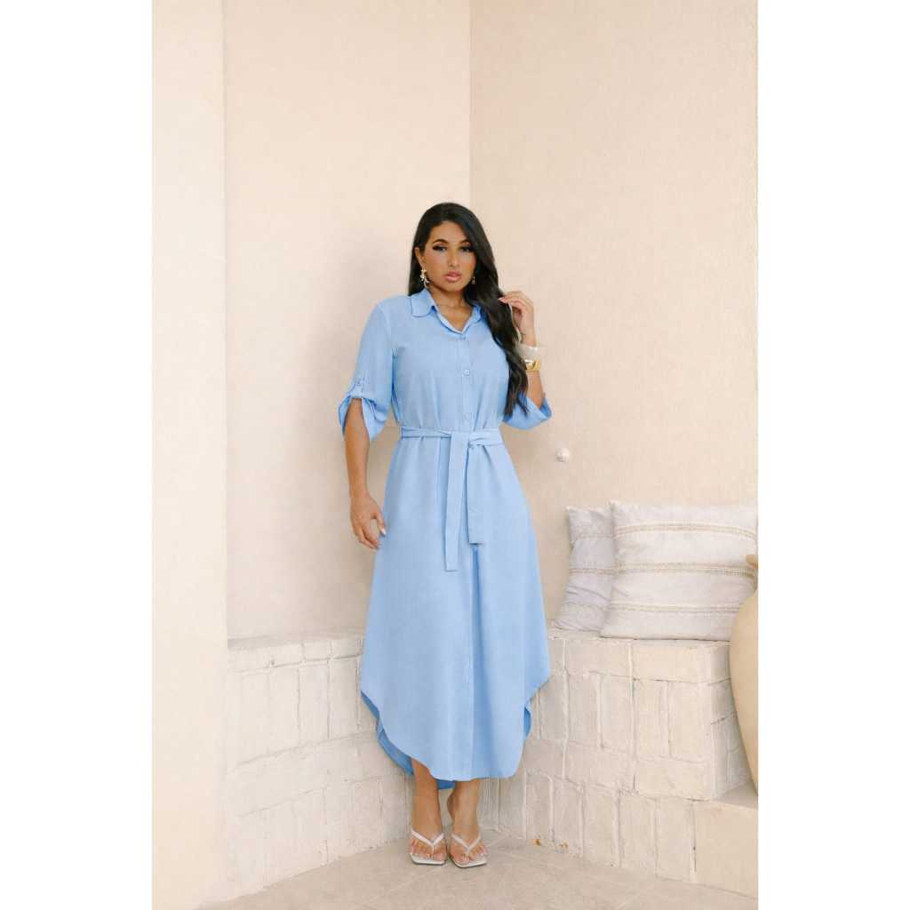Vestido Chemise Com Manga 3/4 e Laço Para Amarrar - Estilo Casual - Cores Liso e Estampado - Envio RAPIDO