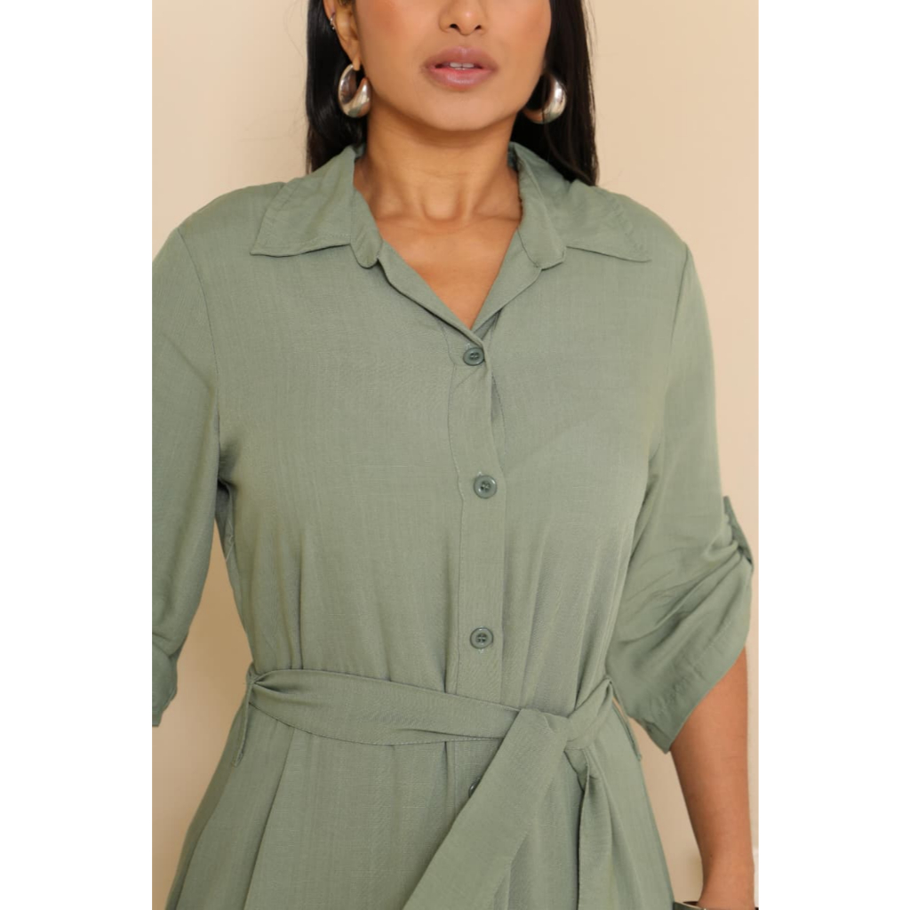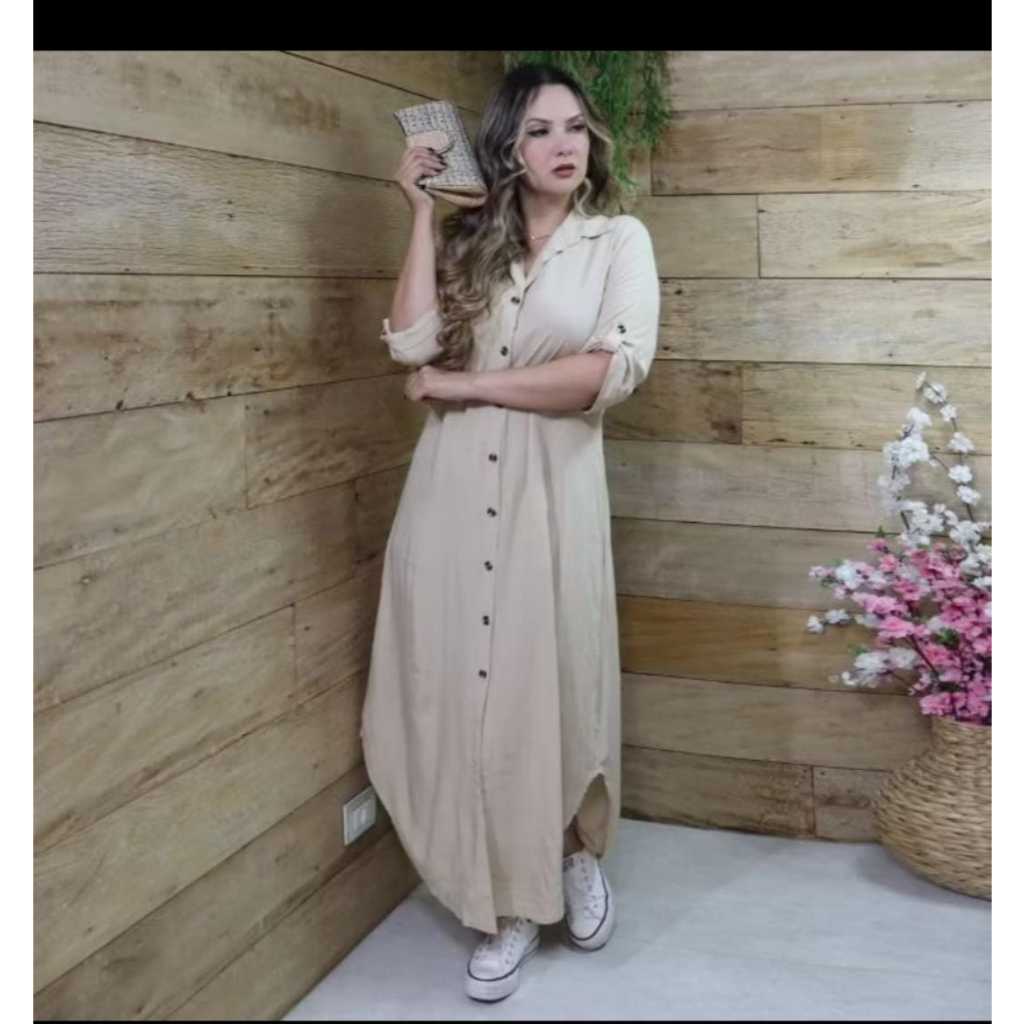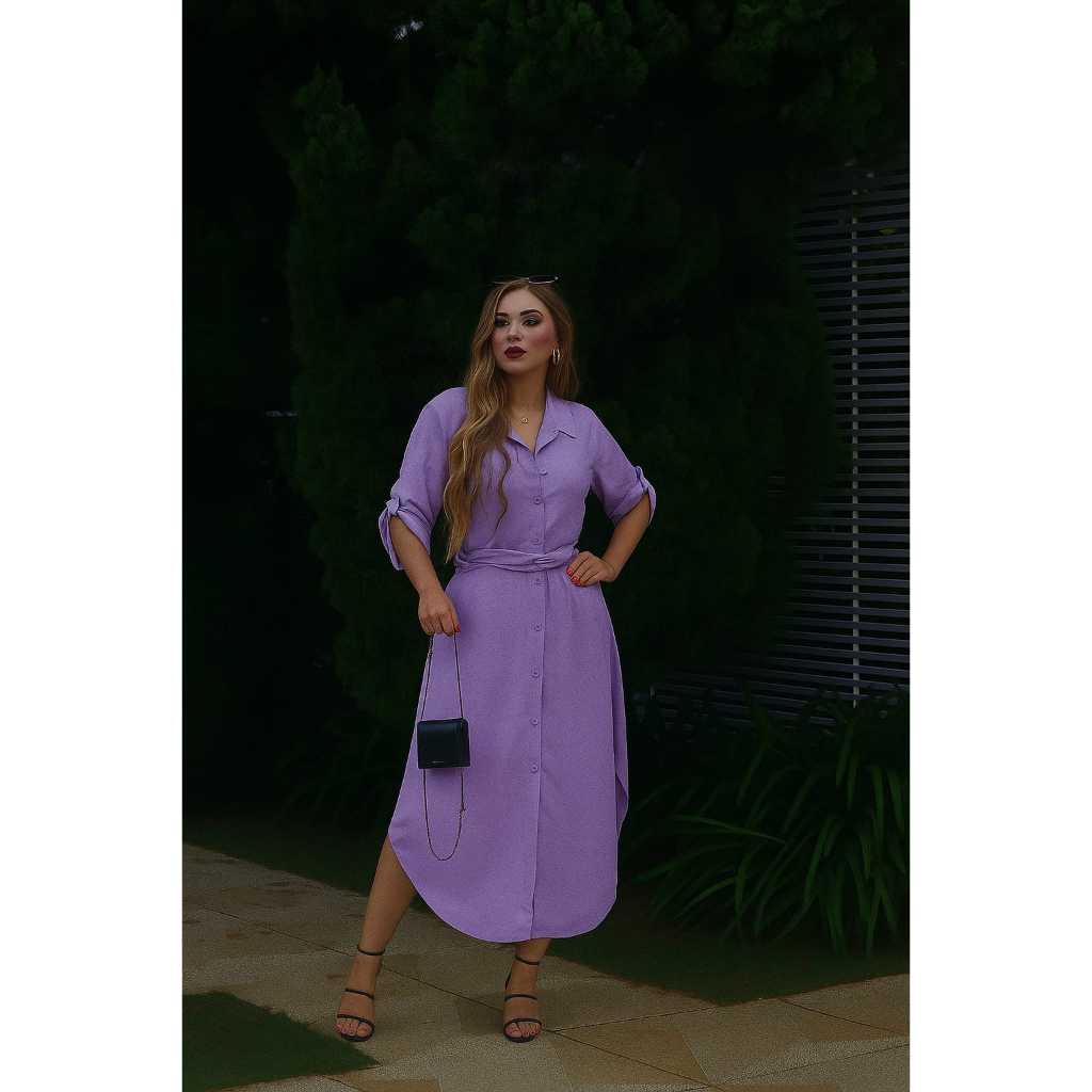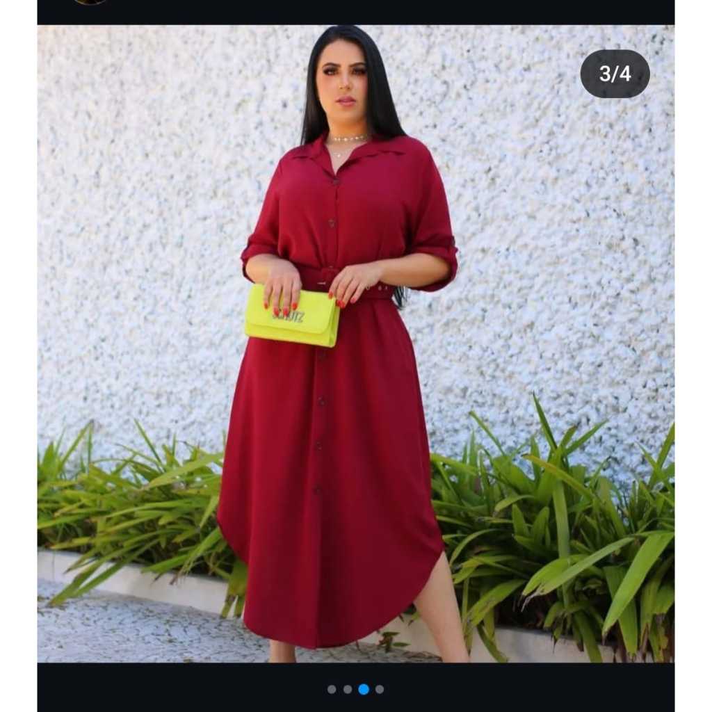 Vestido Chemise Com Manga 3/4 e Laço Para Amarrar - Estilo Casual - Cores Liso e Estampado - Envio RAPIDO