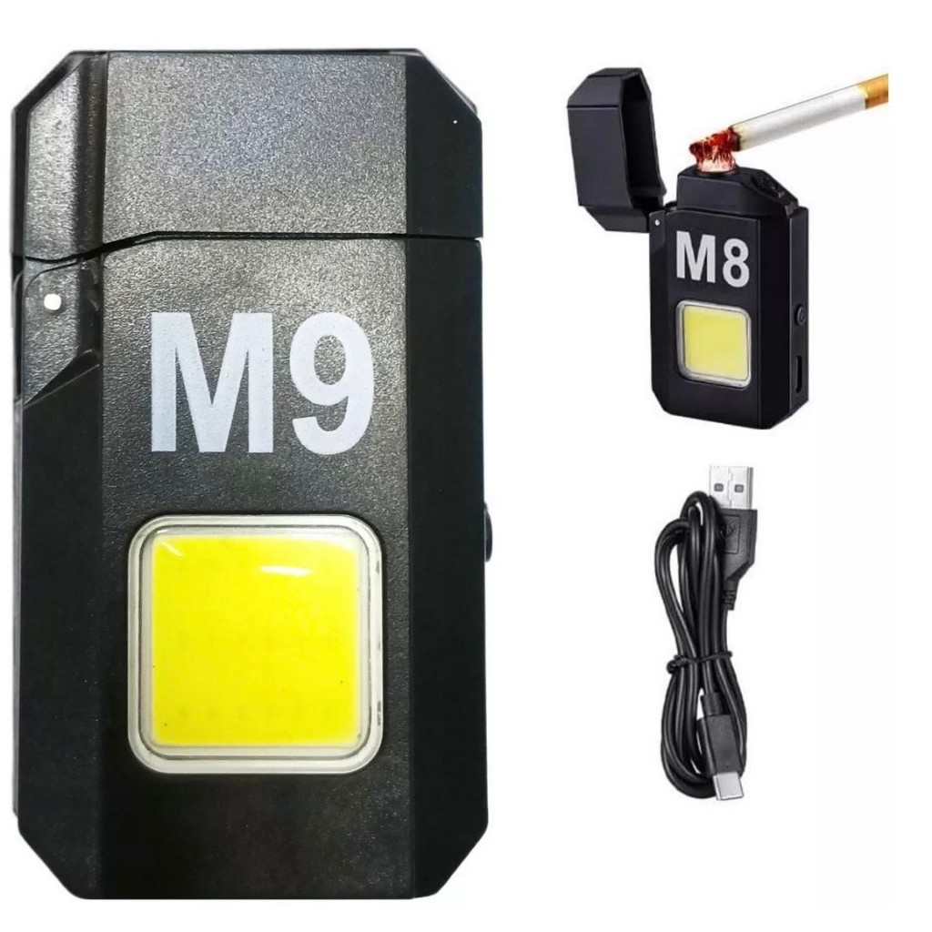Isqueiro Recarregável Eletrônico Camping Com Lanterna M9 Recarregável