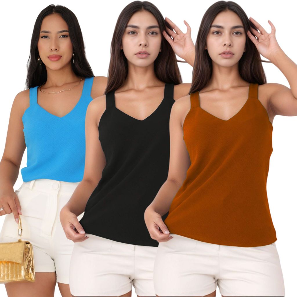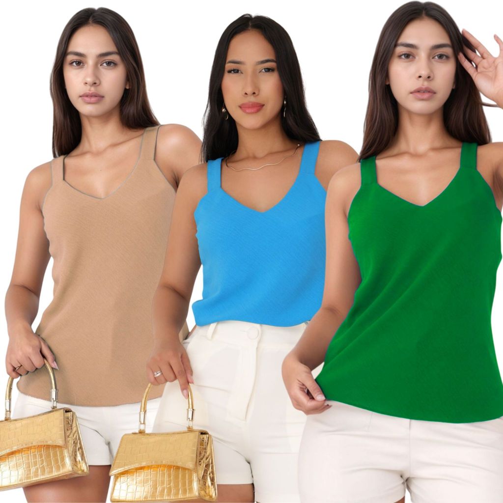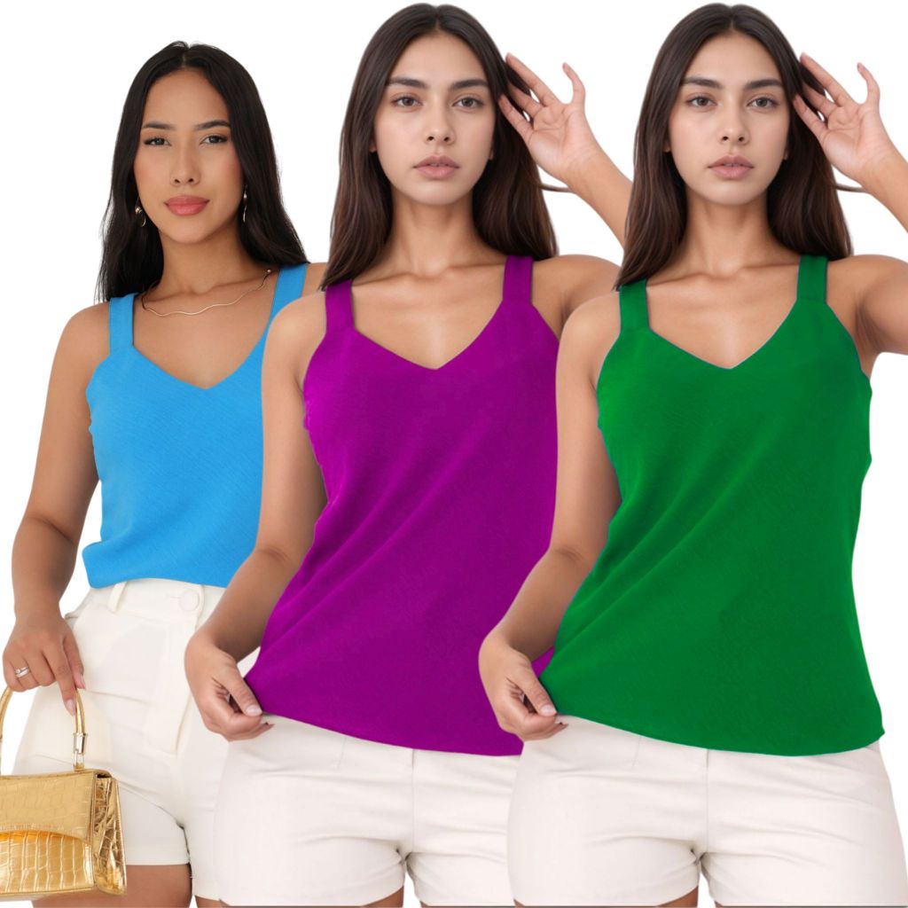 Kit 3 Blusa Regata Feminina Duna Alça Larga Premium Confortável Casual Básica Verão Dia a Dia