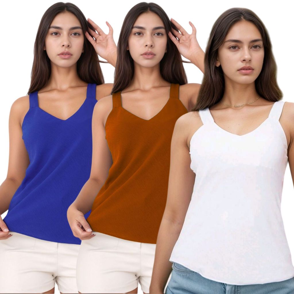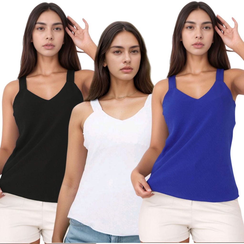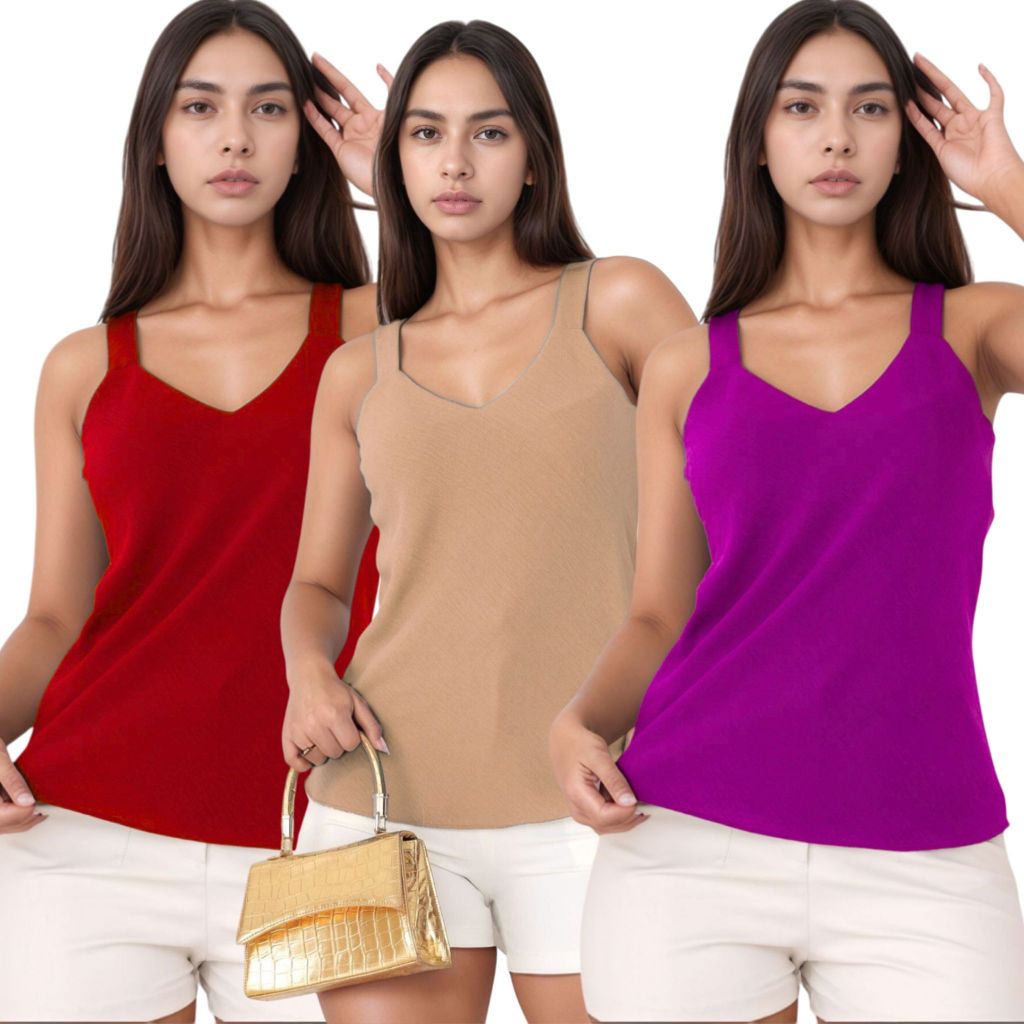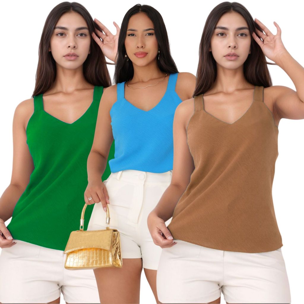 Kit 3 Blusa Regata Feminina Duna Alça Larga Premium Confortável Casual Básica Verão Dia a Dia