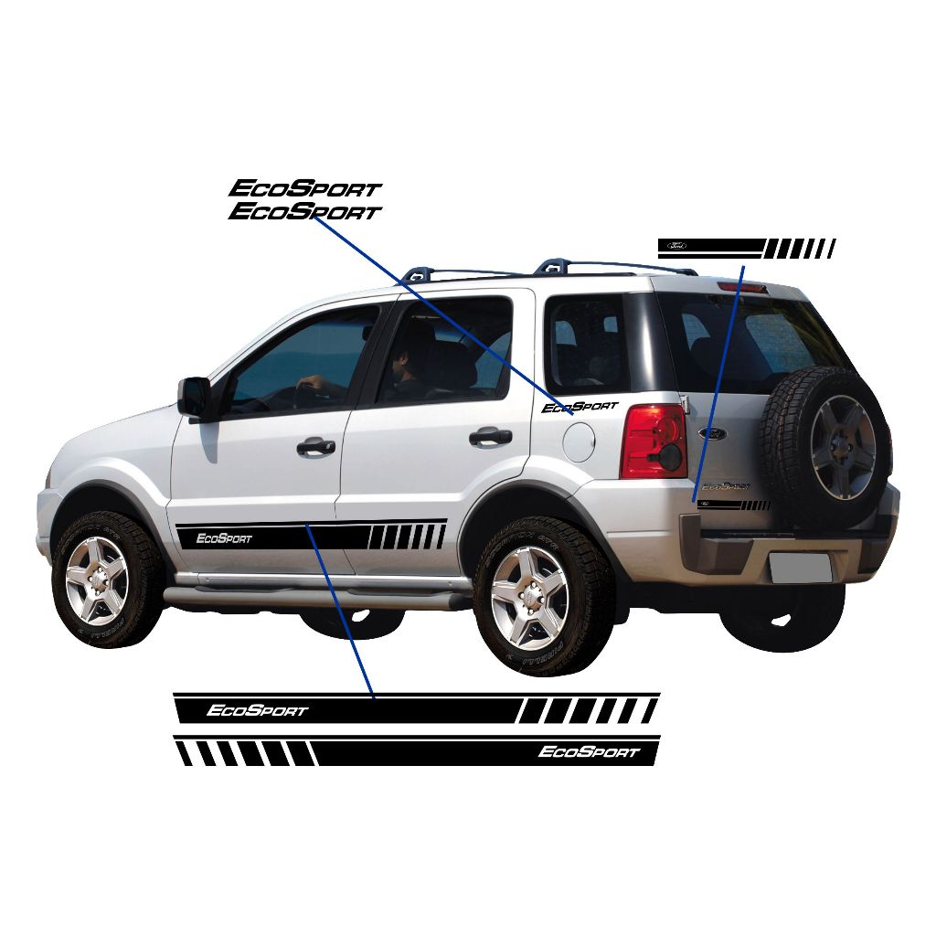 Adesivos Faixas Laterais E Traseira Ecosport Personalizado Kit 5 Und Preto Brilho Fd5