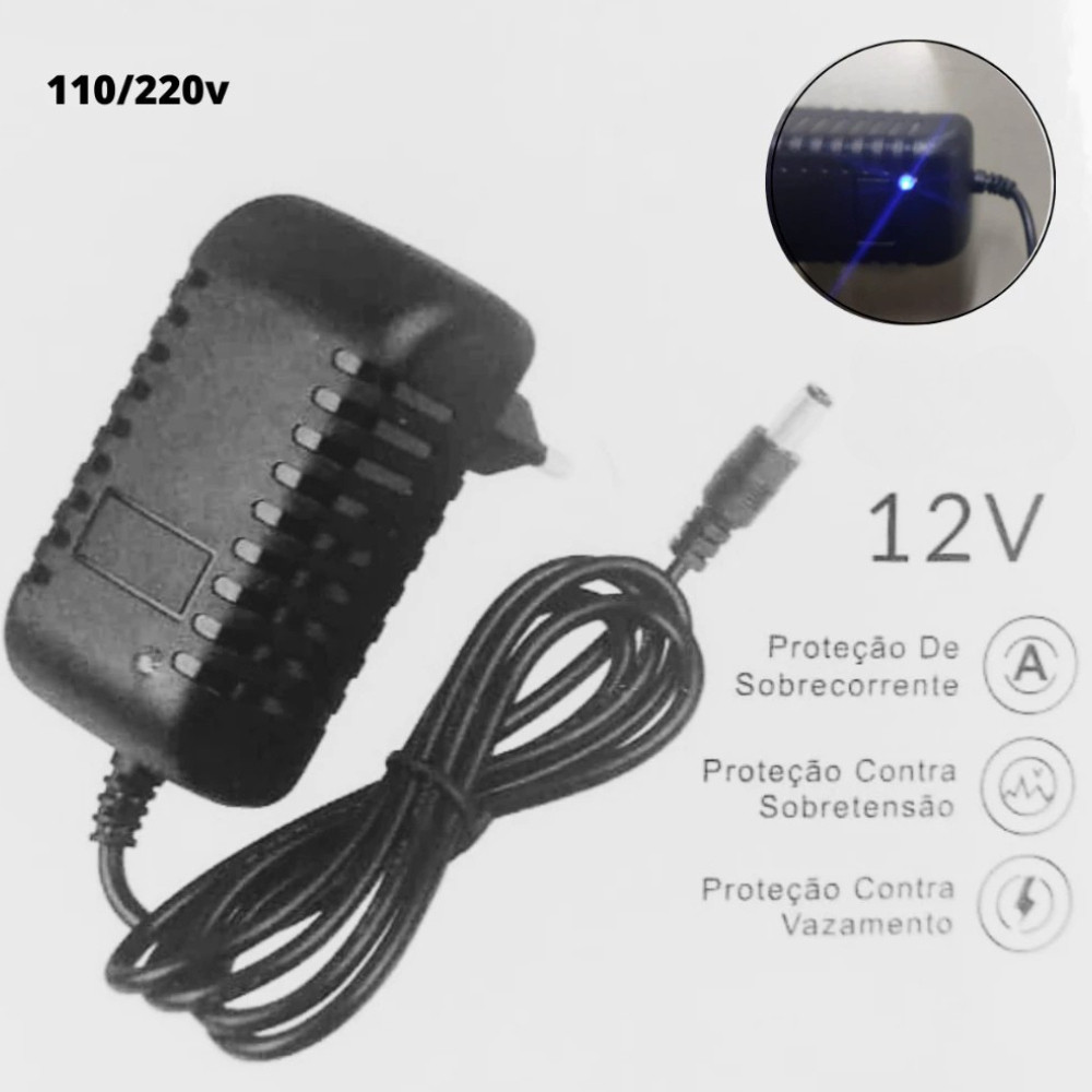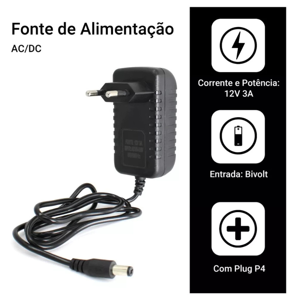 Fonte Carregador Universal com LED Bivolt 3A 36W Plug P4 Macho Preto