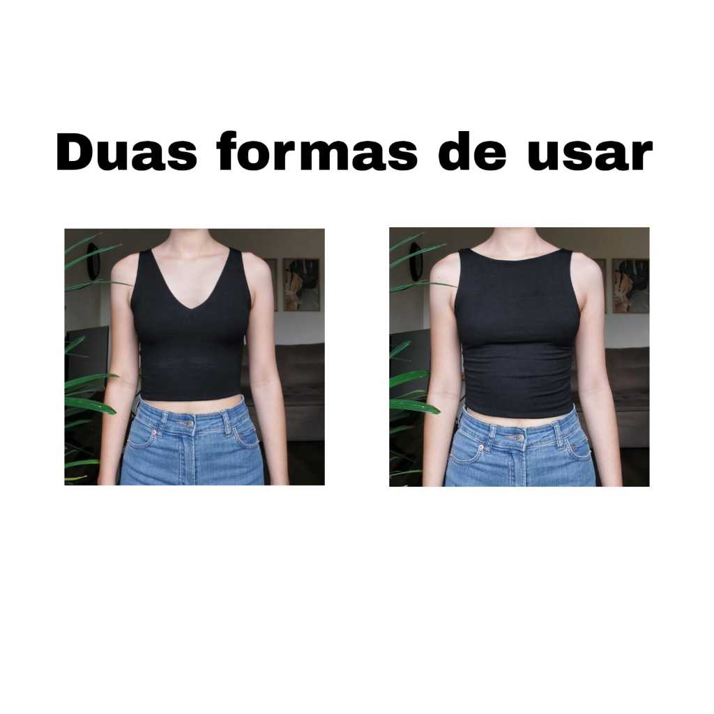 Cropped 2 em 1 Feminino Regata Gola V e Redonda com Pano Duplo Liso Nina