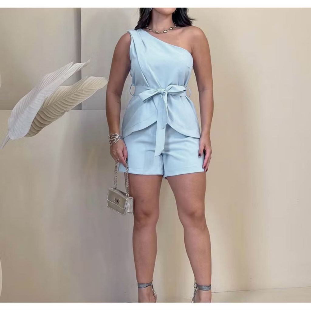 conjunto alfaiataria short e blusa laço