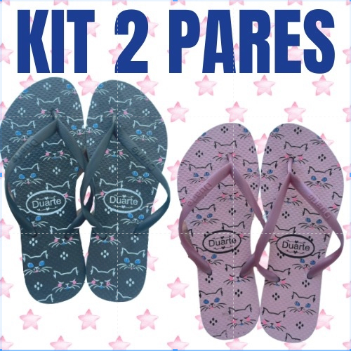kit 2 pares chinelo de dedo feminino estampas sortidas