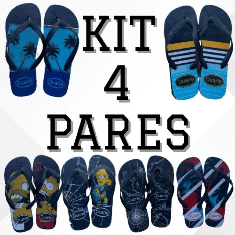 kit chinelo masculino estampado 4 pares