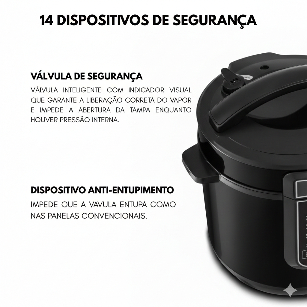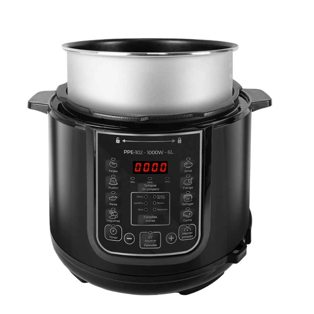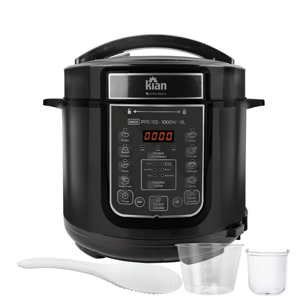 Panela de Pressão Elétrica PPE-102 – 6L Kian Timer Ajustável Controle de Temperatura Cuba Antiaderente Preto