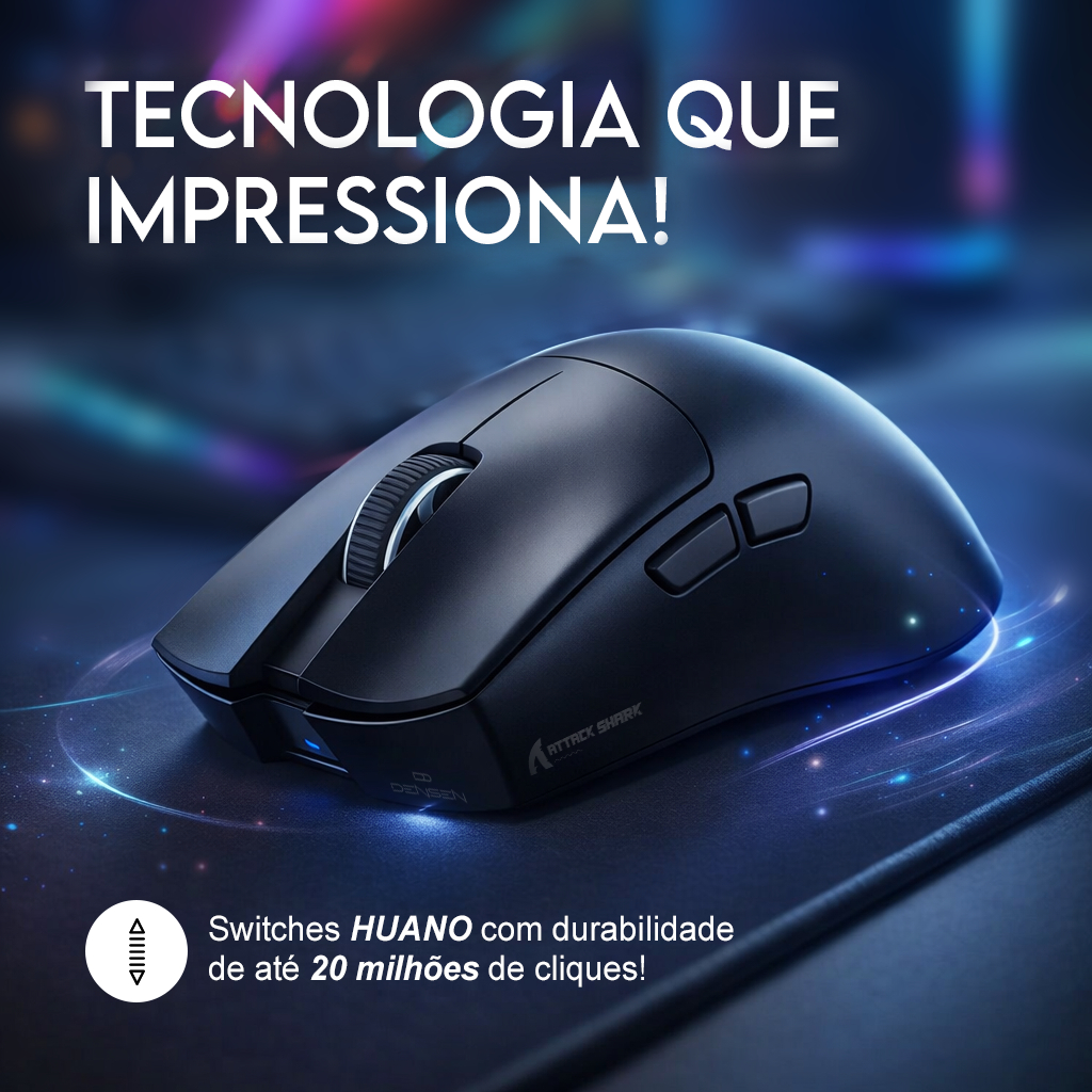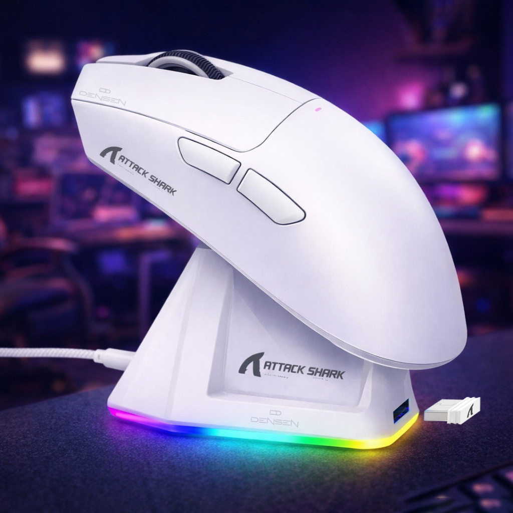 Attack Shark X11 Mouse Gamer Sem Fio Original Com Adesivo Bluetooth Usb Preto e Branco 3 em 1