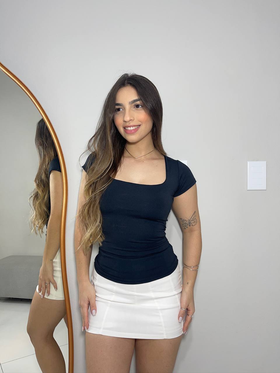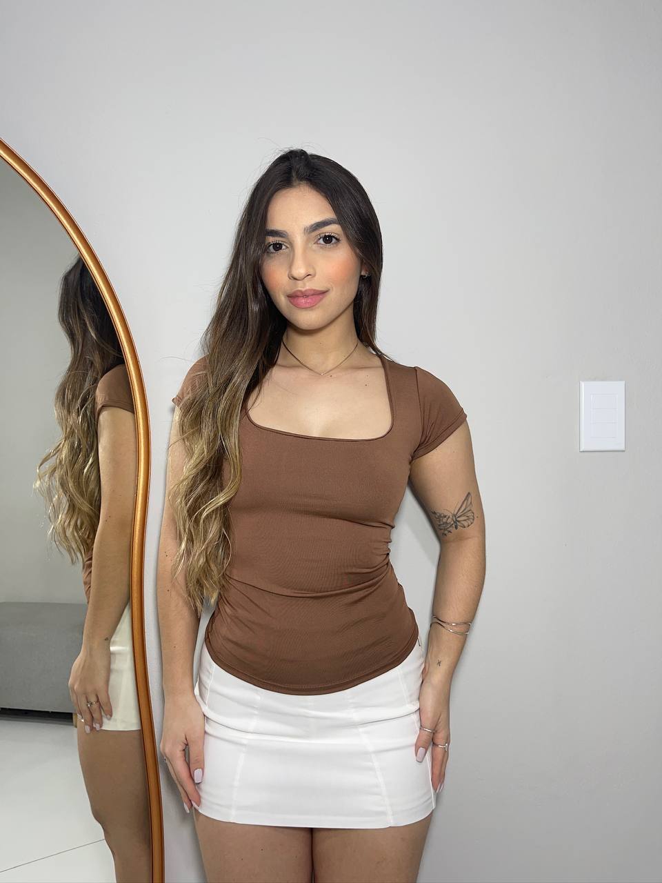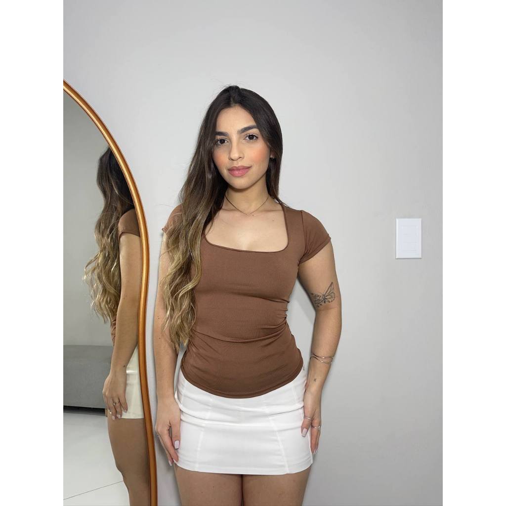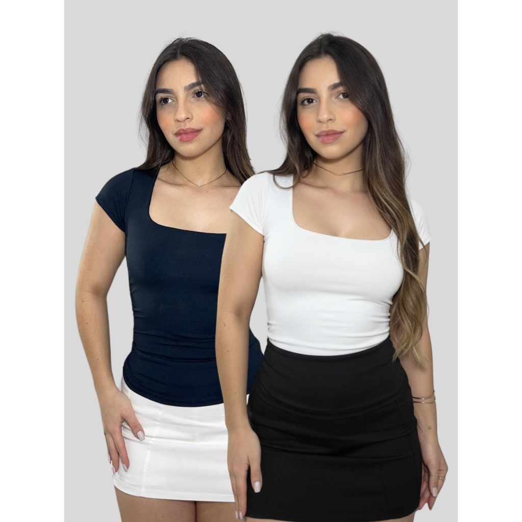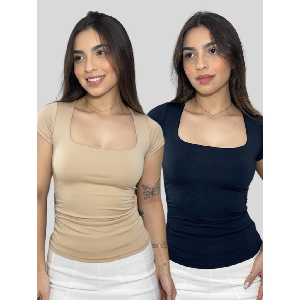 Blusa Moda Feminina Decote Quadrada Básica Regata Blusinha Casual Manga Curta Premium Ana