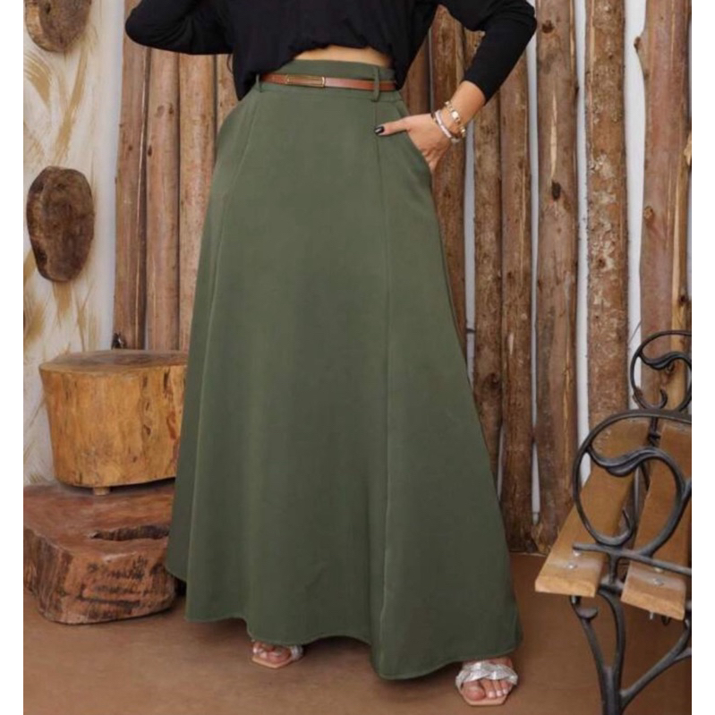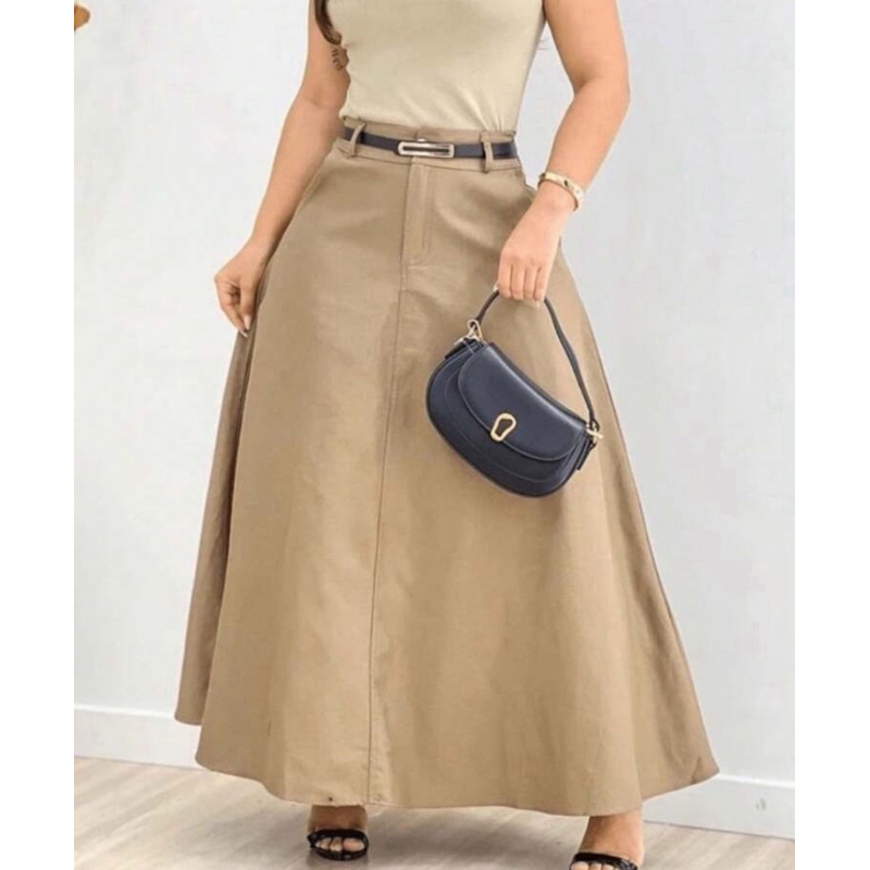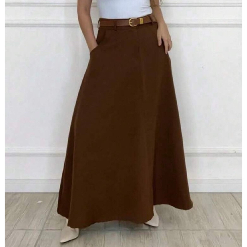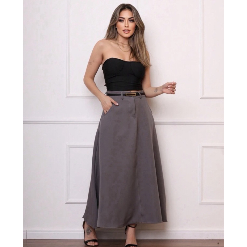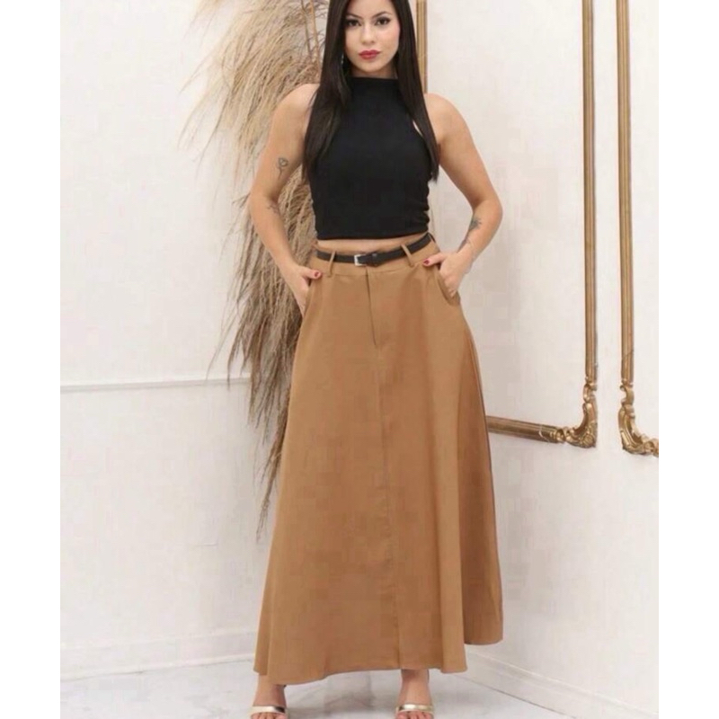 Saia Longa Rodada Feminina Alfaiataria Moda Evangélica Casual Básica Inverno Cintura Alta Elegante Tendência