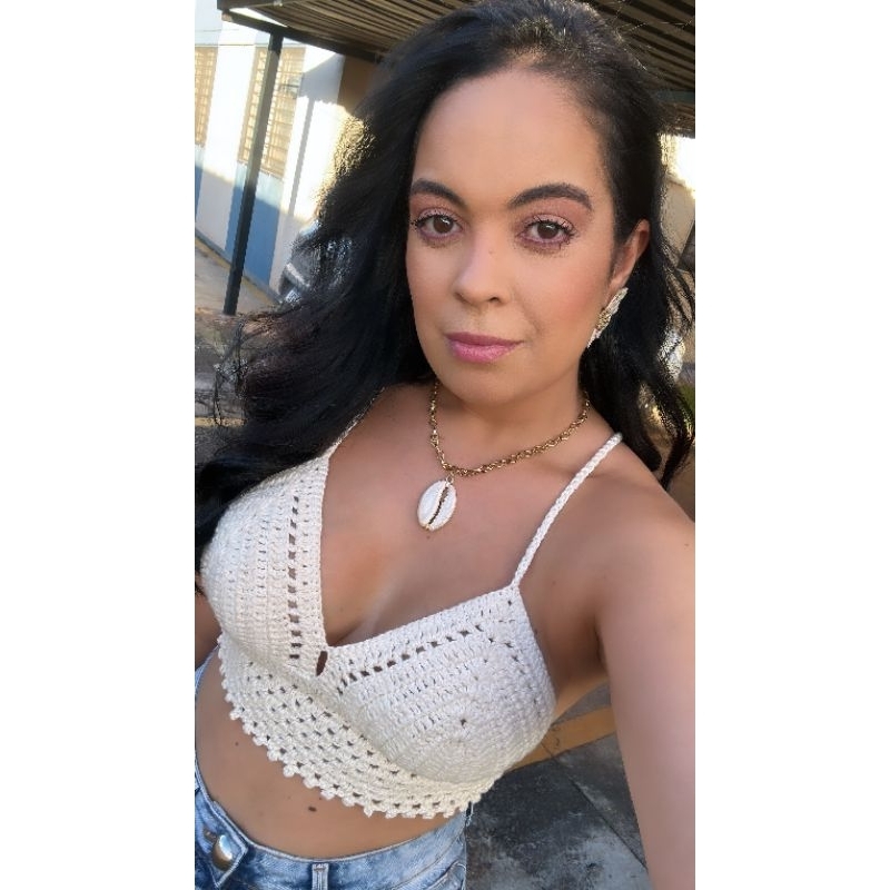 Cropped Crochê de Amarrar Verão Praia Boho Gringa